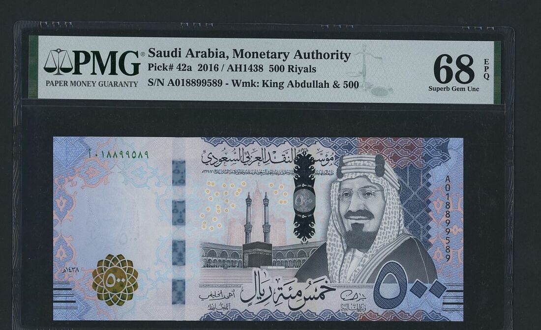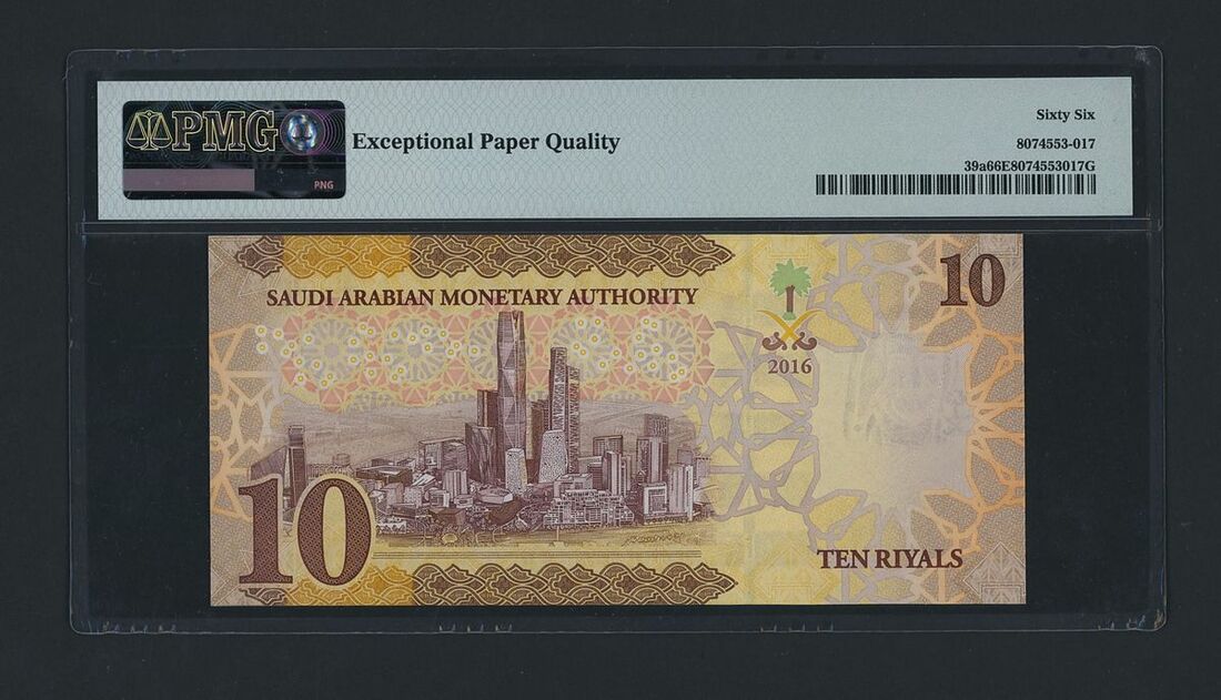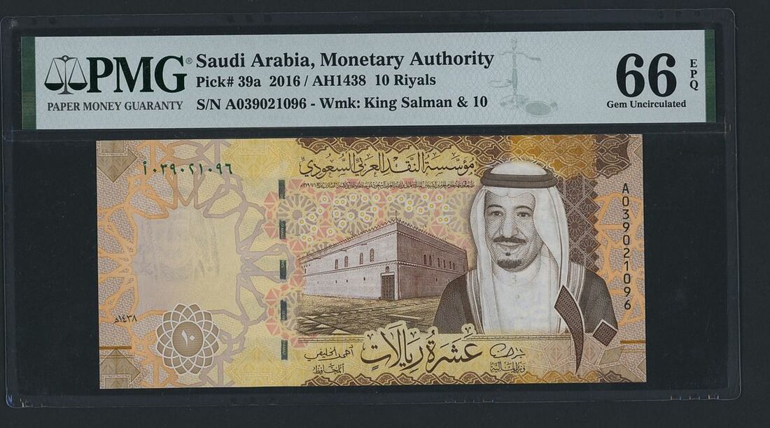 10 Riyals, 2016, serial number A039021096,