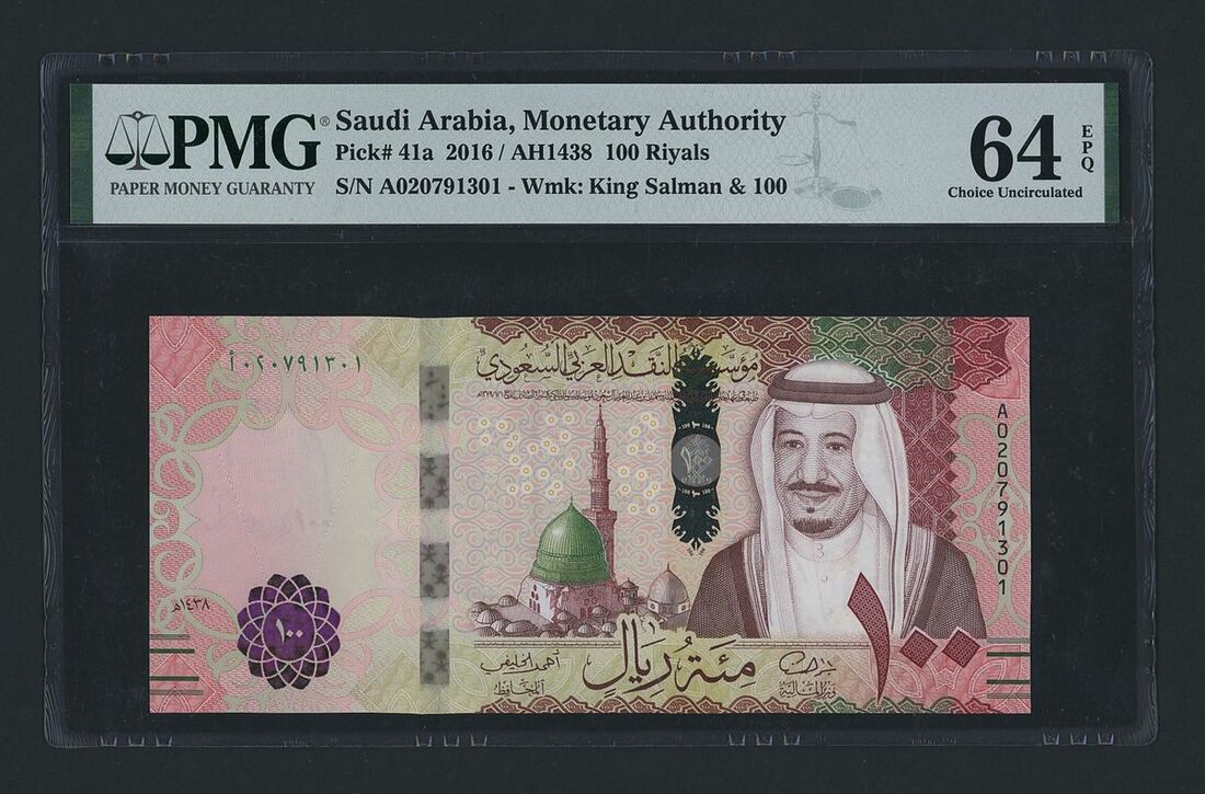 100 Riyals, 2016, serial number A020791301,