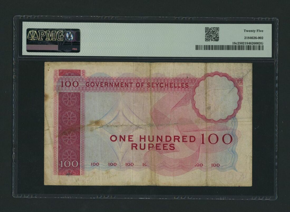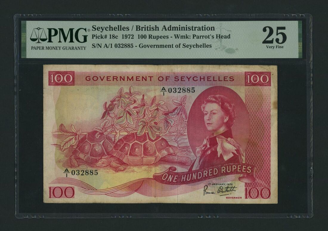 (x) Seychelles, British Administration, 100 Rupees, 1st January 1972, serial number A/1 032885, (Pick 18a, BNB 125), in PMG holder 25 Very Fine