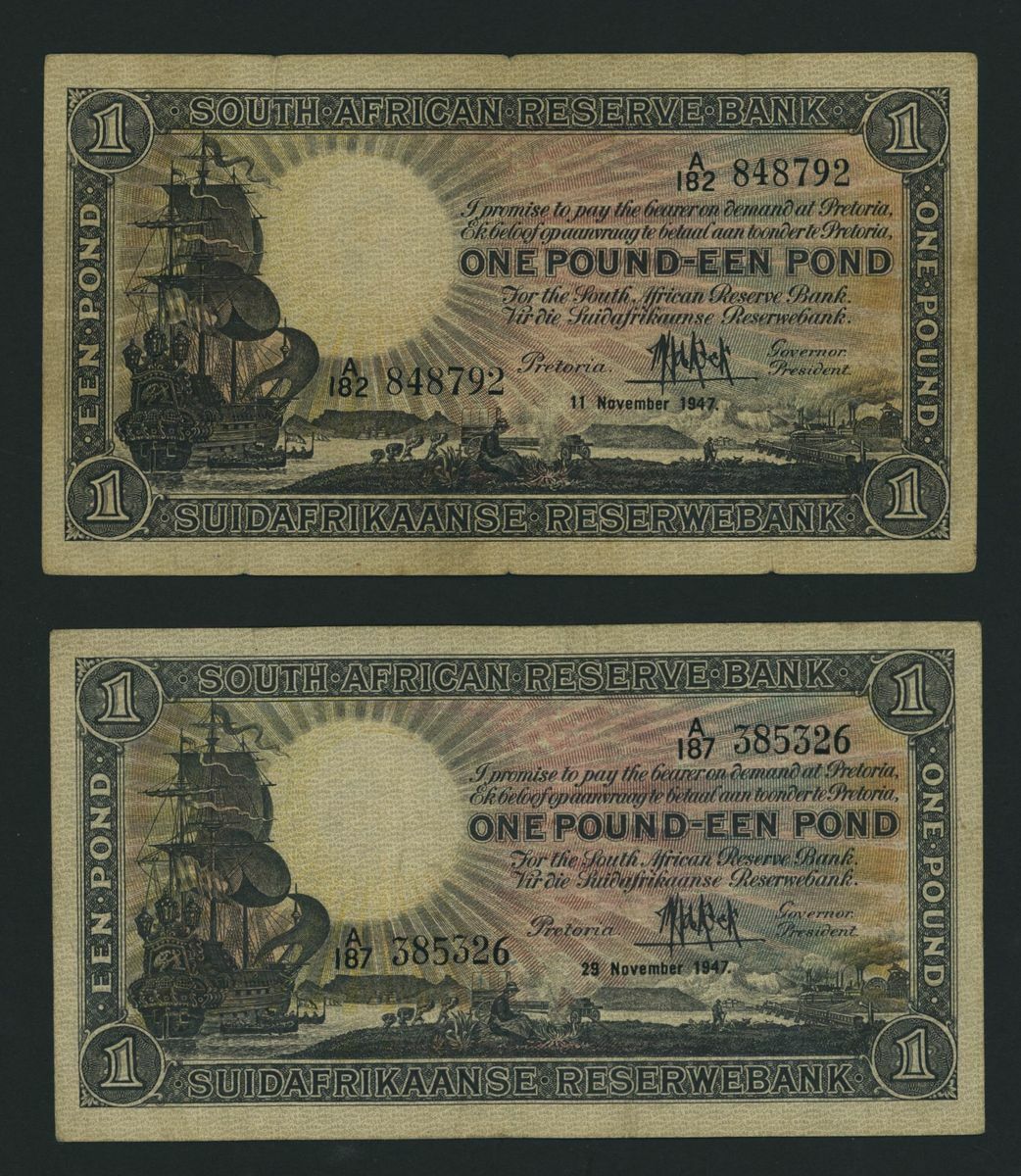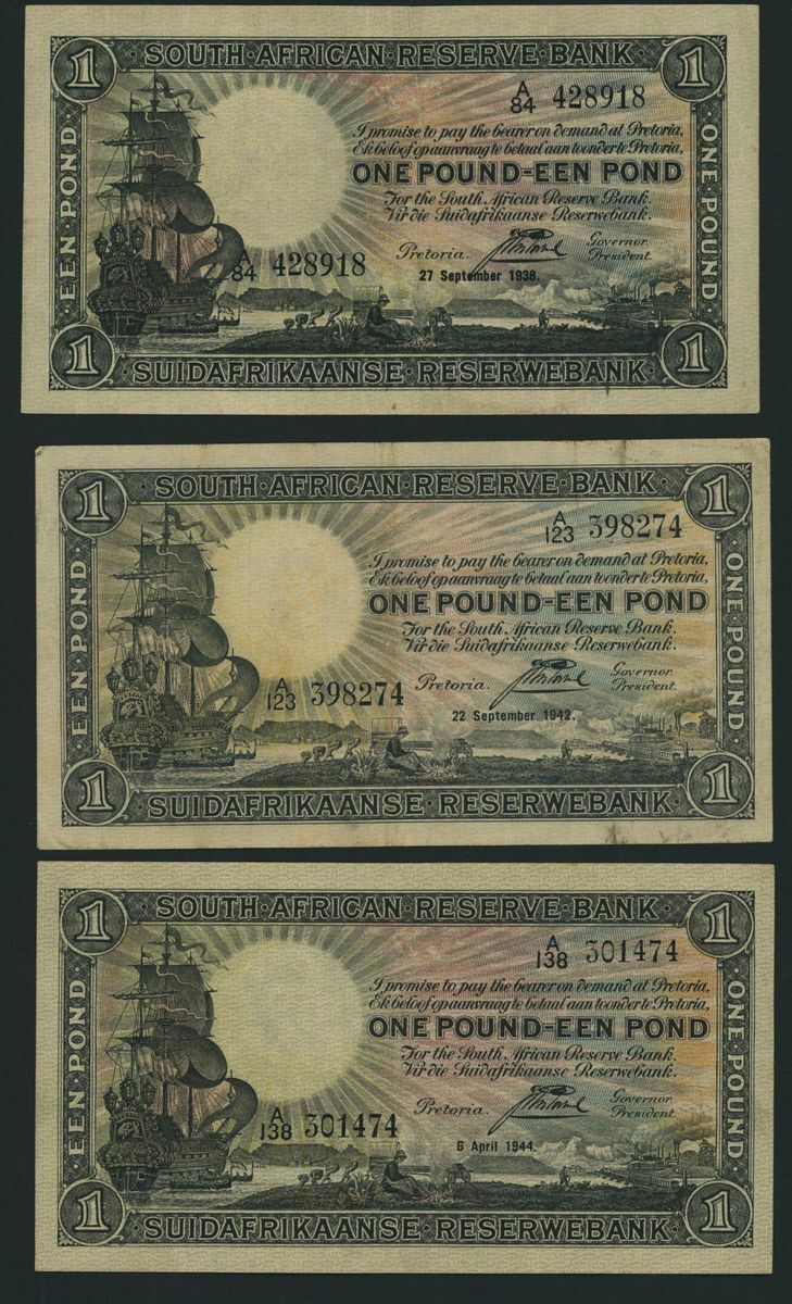 (x) Reserve Bank, South Africa, [5 notes] £1, Pretoria, 1939-47, (Pick 84c, 84e, 84f, BNB B712), fine to very fine (5 notes)