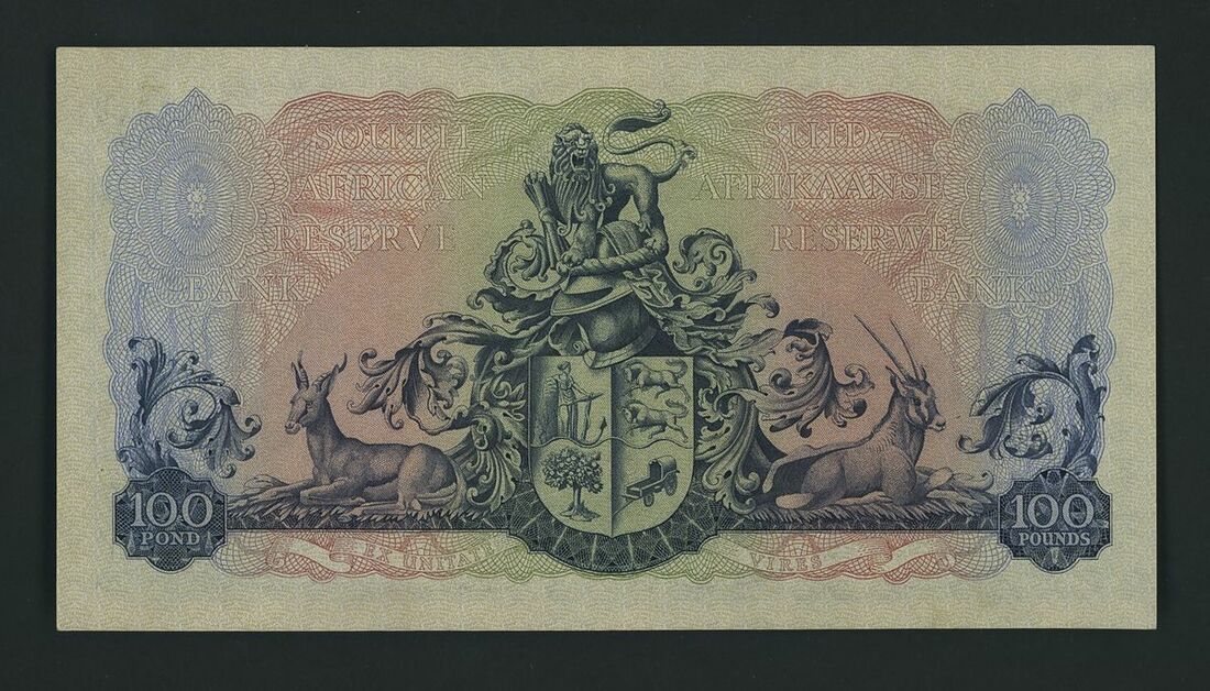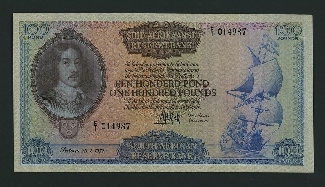Reserve Bank, South Africa, £100, Pretoria, 29th January 1952, serial number E/1 014987, (Pick 101, BNB 729), solid extremely fine, an incredibly striking note with a magnificent design, rare