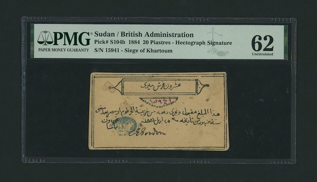 (x) Sudan / British Administration, 20 Piastres, 1884, serial number 15941, Hectograph signature,