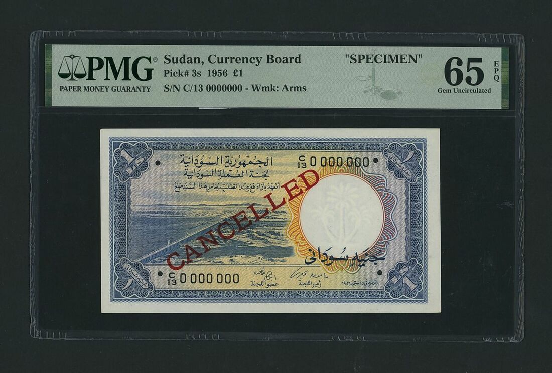 (x) Currency Board, Sudan, specimen £1, 1956, serial number C/13 0000000, (Pick 3s, BNB 208as), in PMG holder 65 EPQ Gem Uncirculated