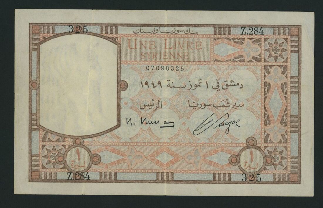 Banque de Syrie et du Liban, Syria, 1 Livre, 1st July 1949, serial number Z.284 325, (Pick 63, BNB 309b), good very fine