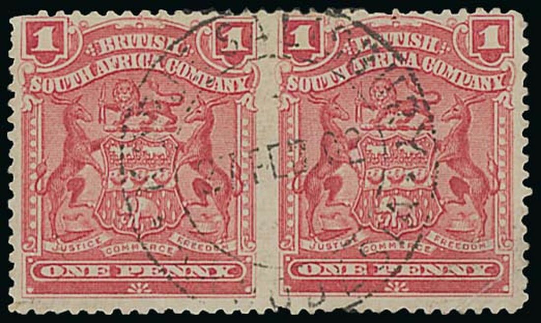 1d. rose, horizontal pair variety imperforate between, used by almost complete