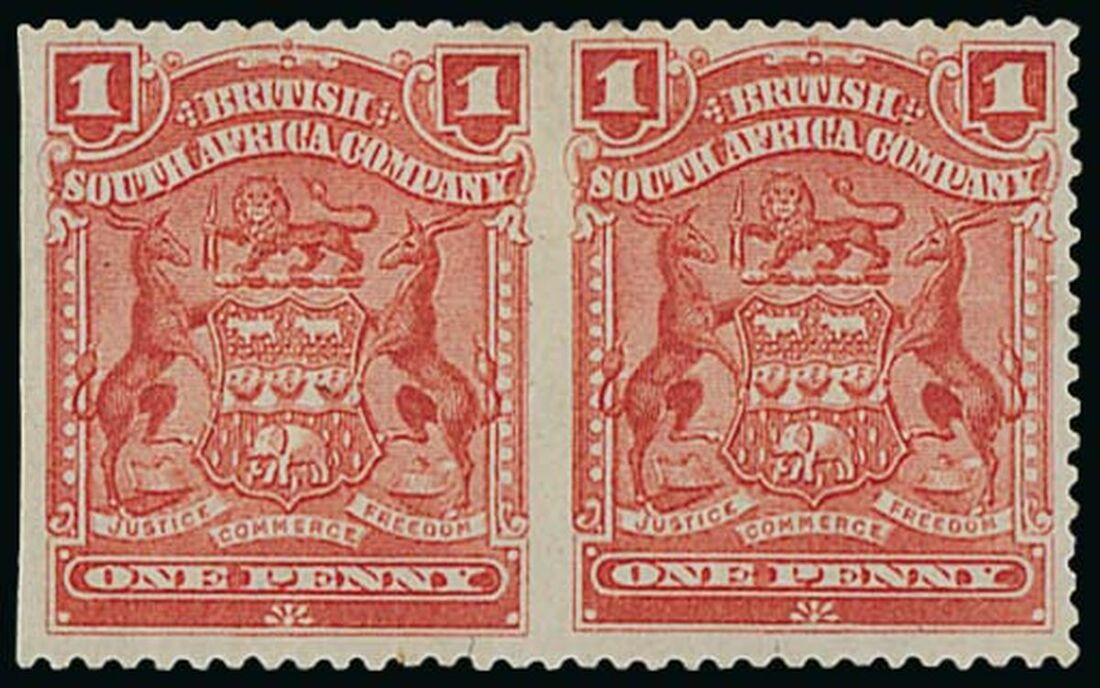 1d. red, horizontal pair variety imperforate between and at left, vertical crease not affecting the appearance; large part original gum. S.G. 78c, £800. Photo