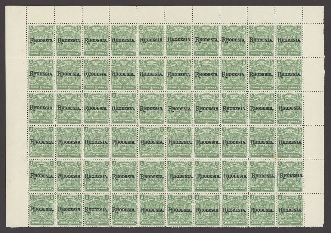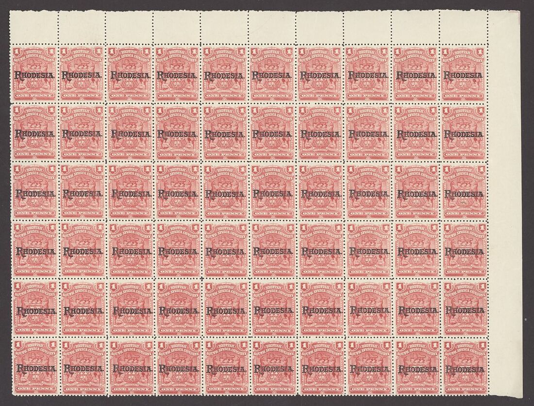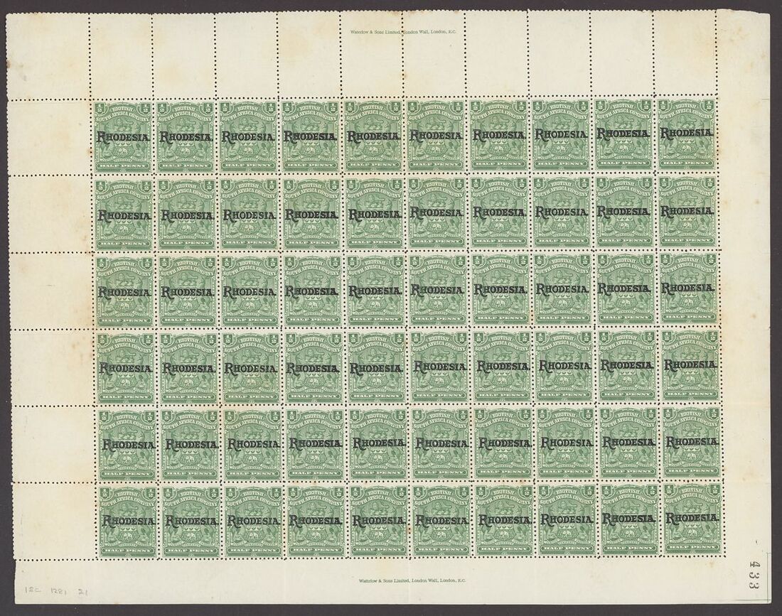 ½d. green (2), 1d. carmine-rose and 3d. claret, each in a pane of sixty, one of the ½d. with imprint at top and foot and with sheet number '433' (some tone spots), the second ½d. pane with margins on three sides, the 1d. with margins on two sides and the 3d. pane with margins on all four sides but without imprint; good to fine mint, some minor peripheral damage to margins on some. S.G. 100-104 group, £1,950