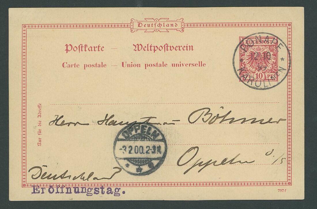 1899 (12 Oct.), Germany 10pf. postal stationery card to Oppeln, Ponape/Karolinen cancellation and with arrival c.d.s on the front; fine