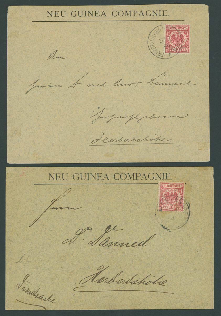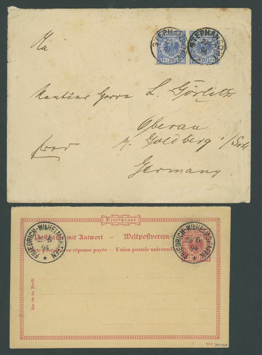 1894-1902, selection of twelve covers or cards bearing unoverprinted German stamps, including 1894 envelope from Stephansort to Goldberg franked 20pf. pair, 1896