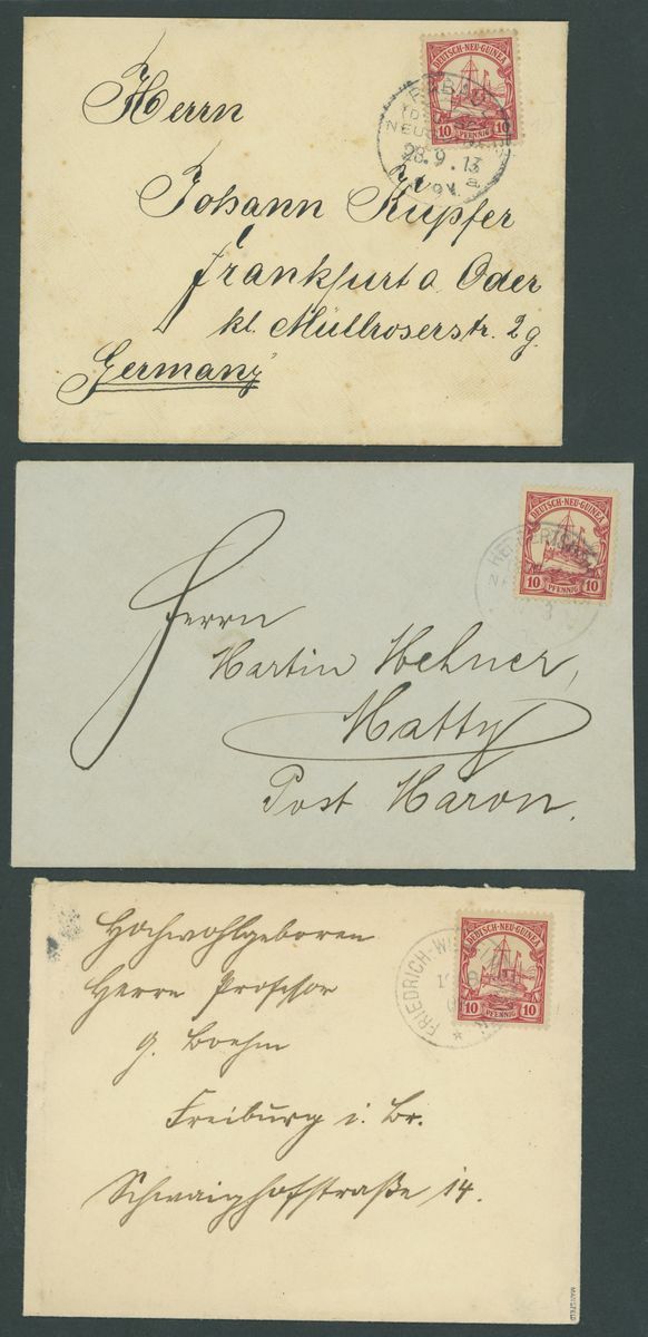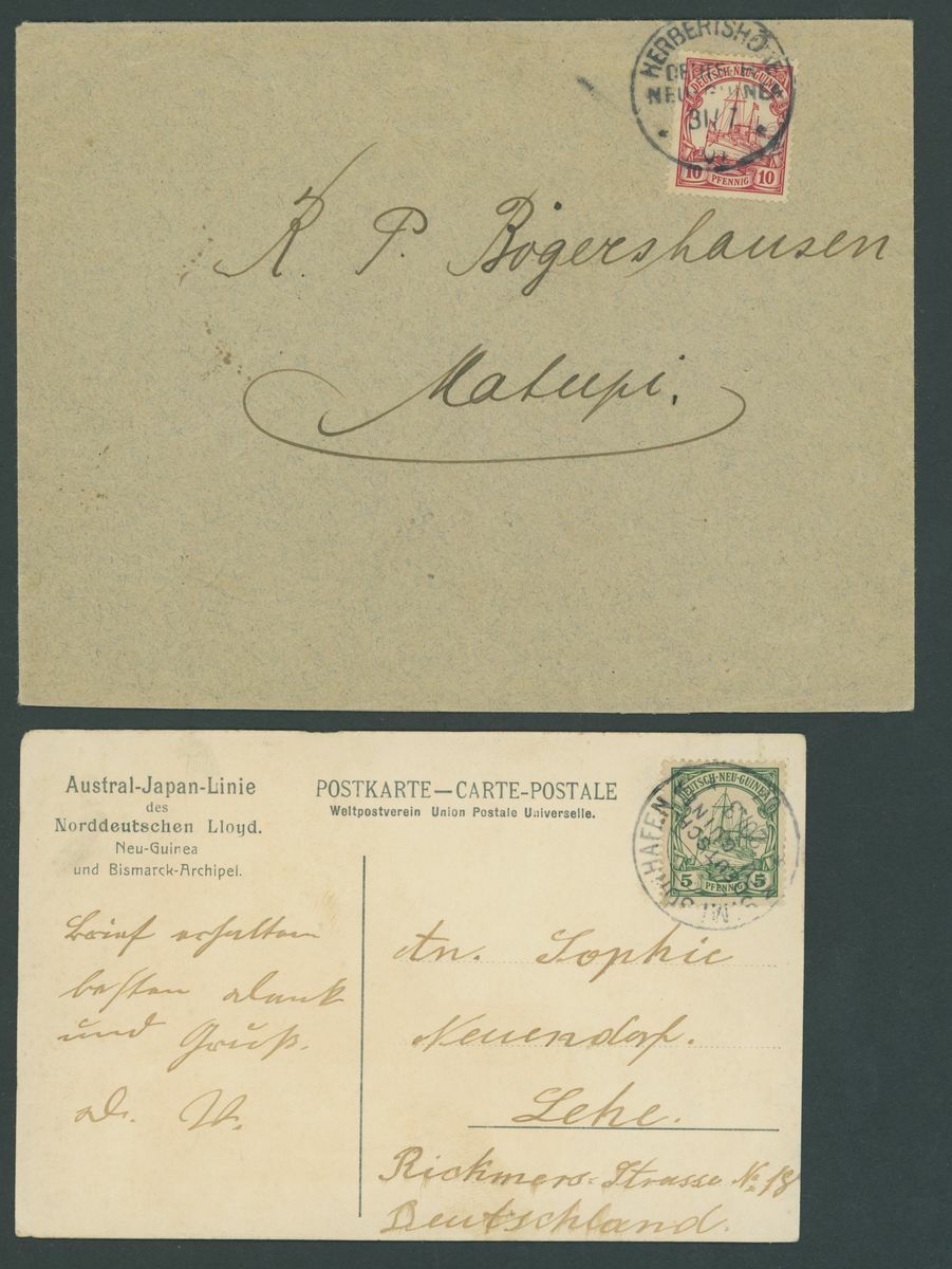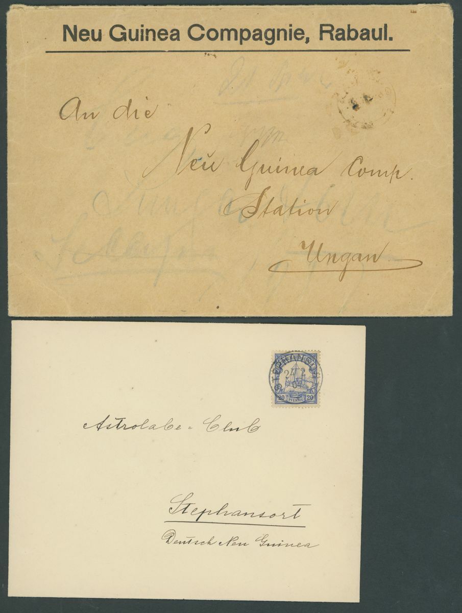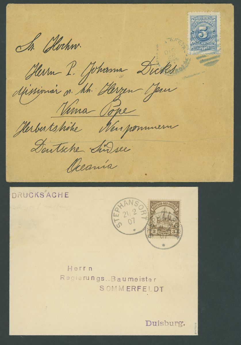 Selection on nineteen covers or cards (8 Registered), including incoming cover from Colombia, 3pf. (10) including imprint strip of five, on cover Registered from Herbertsoh to Domitz, 5pf., 10pf. and 25pf. on cover Registered to Frankfurt with blue Herbertshoh cancellations, 30pf. on cover Registered from Rabaul, 30pf., 40pf. and 50pf. on cover Registered from Matupi, 80pf. on cover Registered from Stephansort, etc., chiefly good to fine