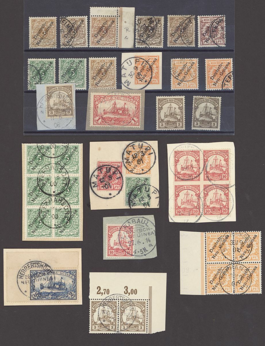 Mint and used selection on pages and cards, including 1897 25pf.(8 with a block of four), 1901 2m. used (2), , Registration etiquettes, incoming Mail with1915 Censored cover from Bavaria, etc., mixed condition. An interesting group