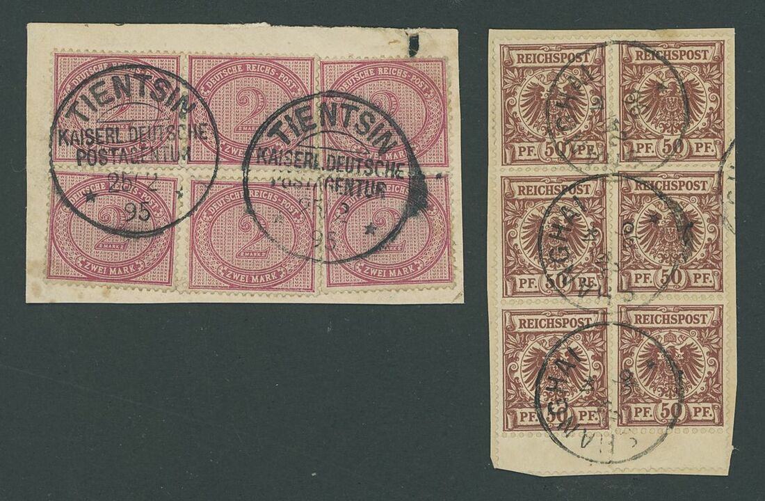 1895 (25 Feb.), piece franked 1891-1901 2m. deep carmine (2 pairs and two singles) with