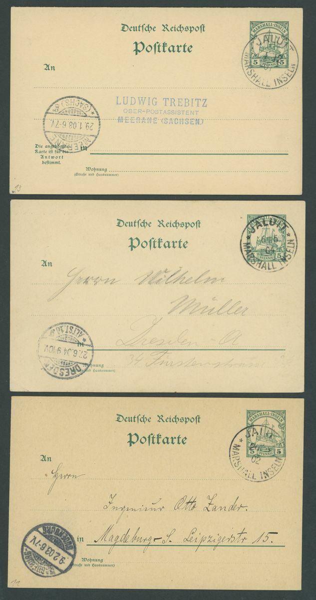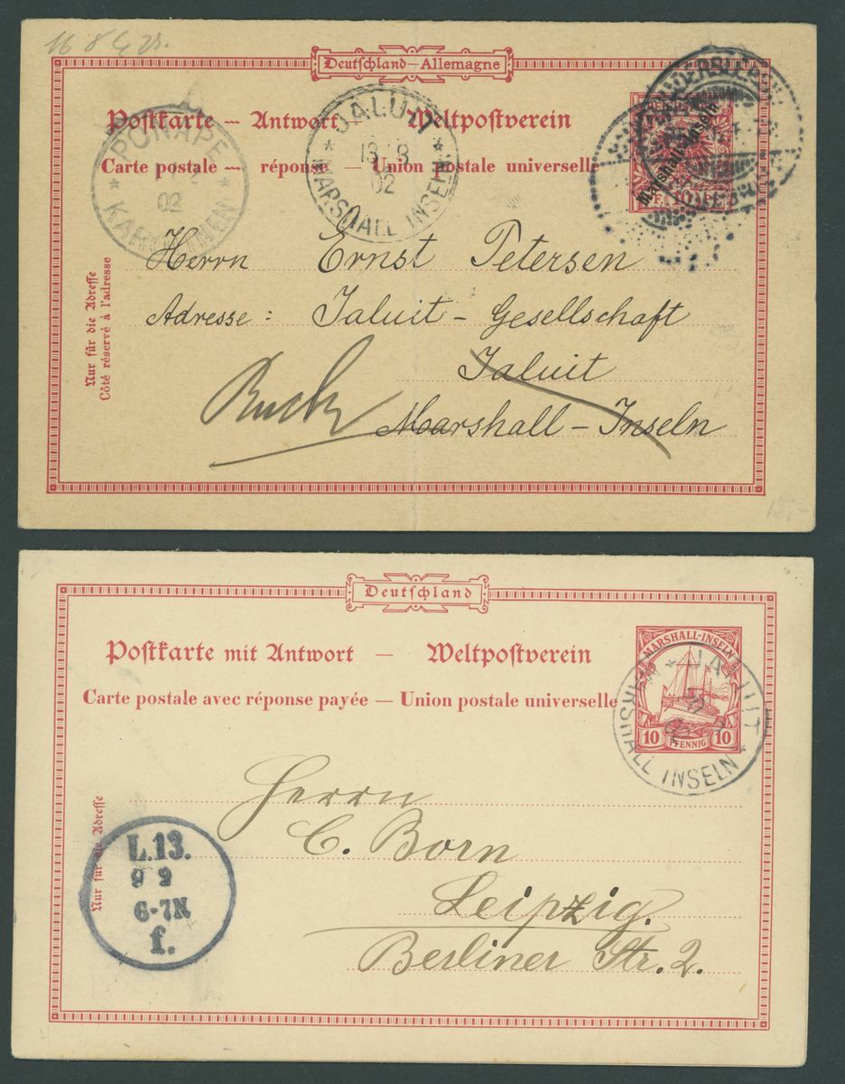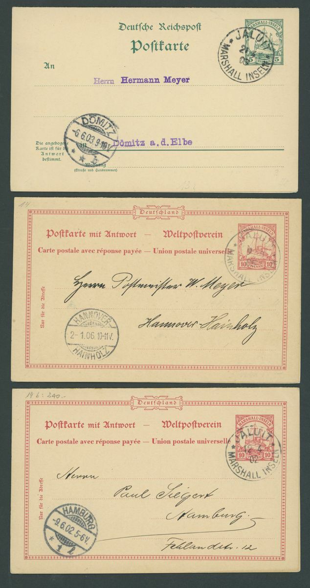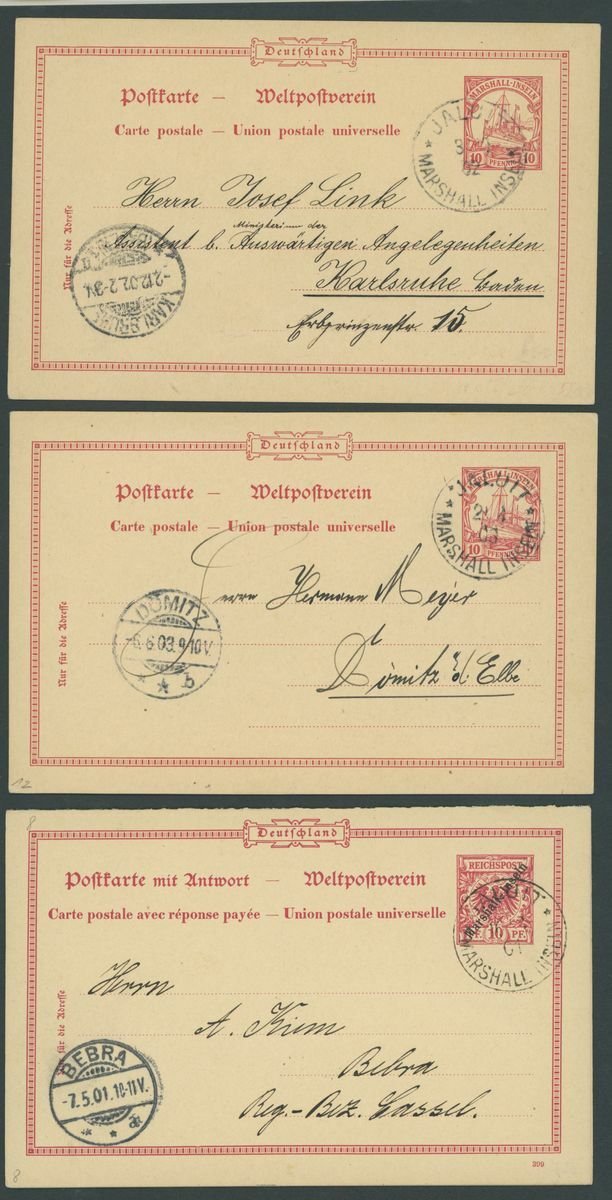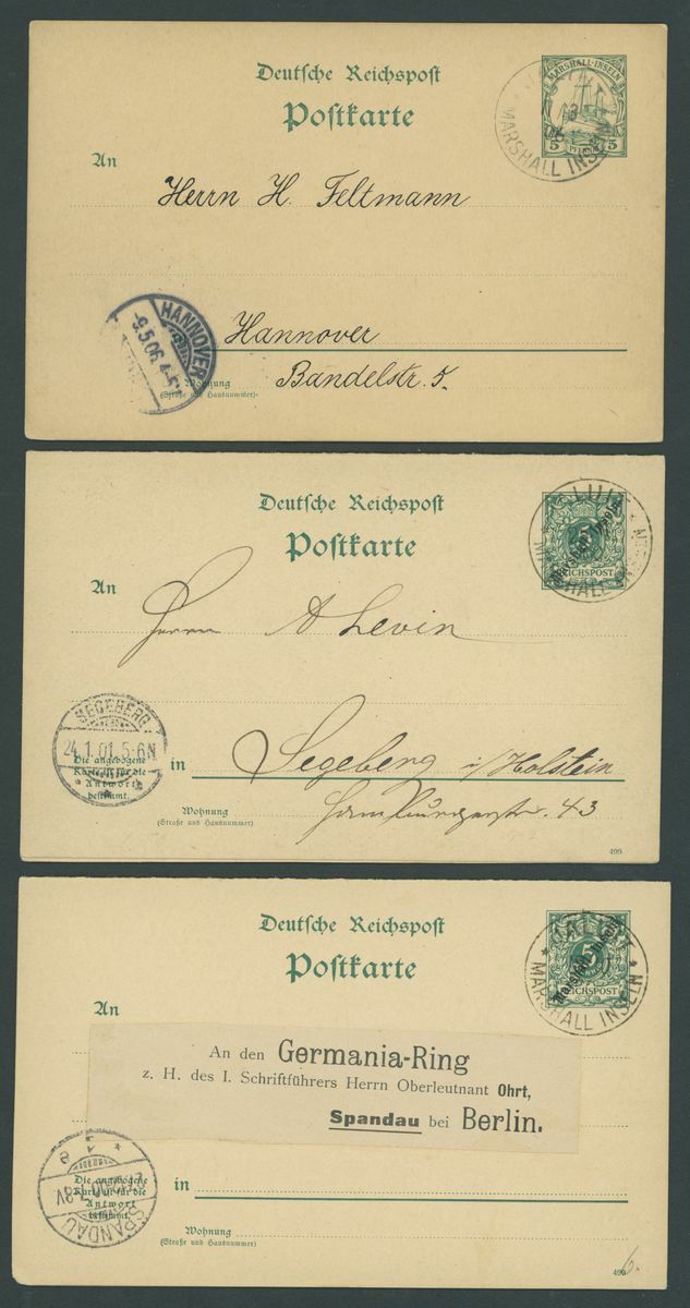 Postal Stationery: Mint and used selection (49 items), including cards with 1897-1900 "Marschall" 5pf. (2 mint and one used), "Marchall" 10pf. unused and used, Reply-Paid 1897-1900 "Marshall" 5pf. and 10pf. (4 of each with outward portion used and inward unused), etc., chiefly fine