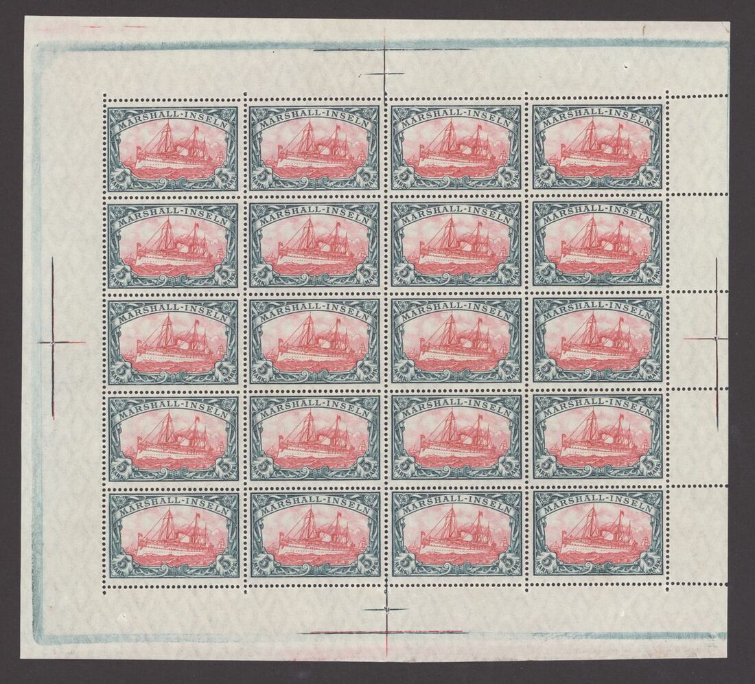 5m. carmine and black, centre type II, complete sheet of twenty (4 x 5), unmounted mint with full margins; some very light toning in the margin, fine. S.G. G25