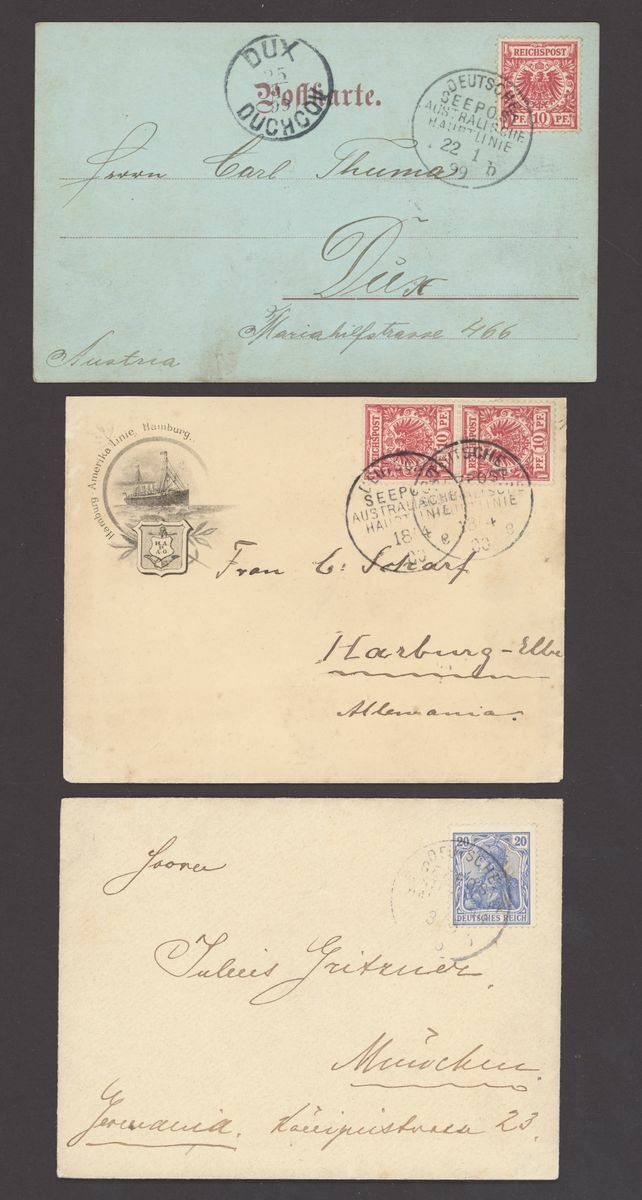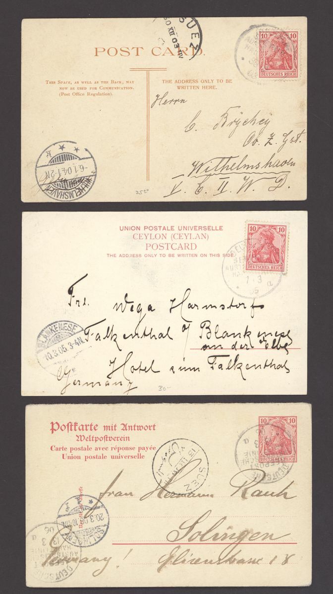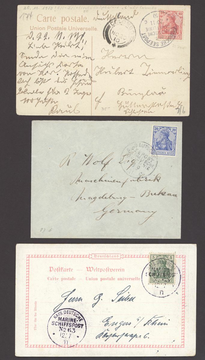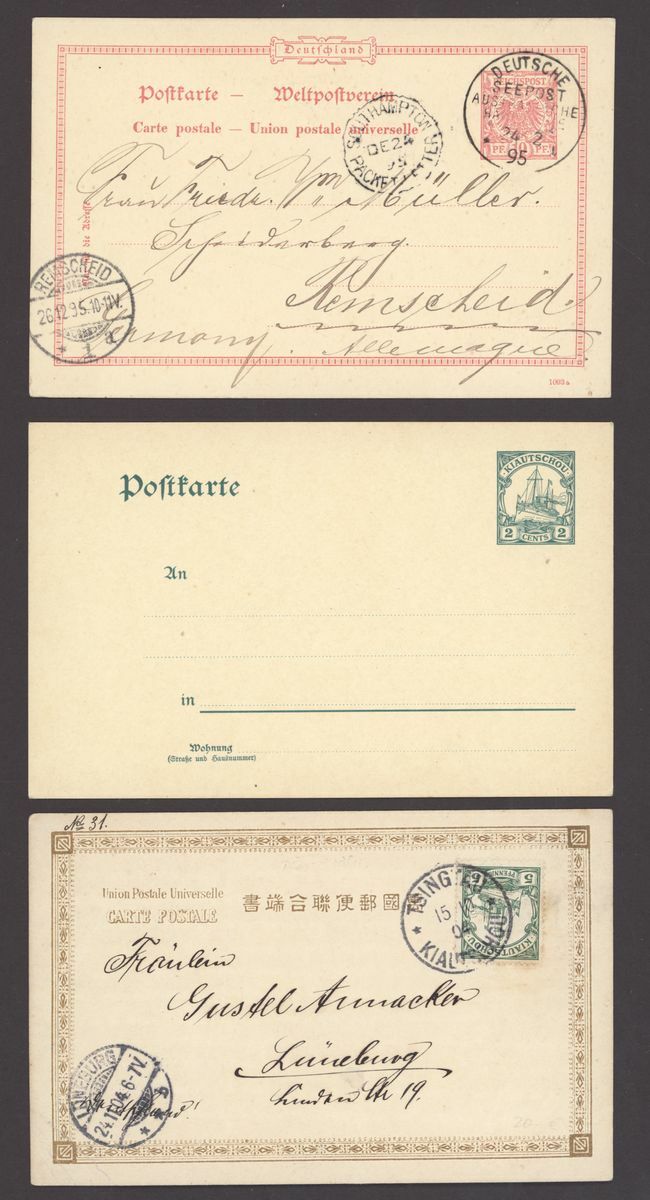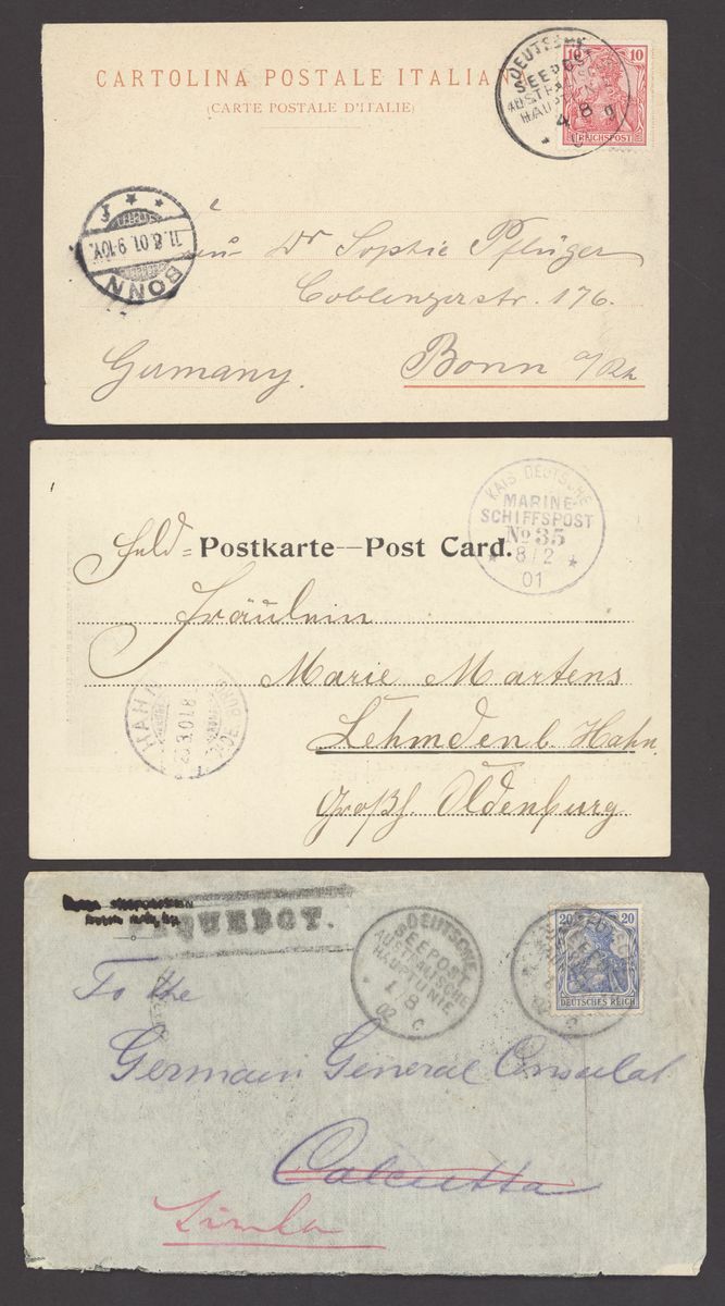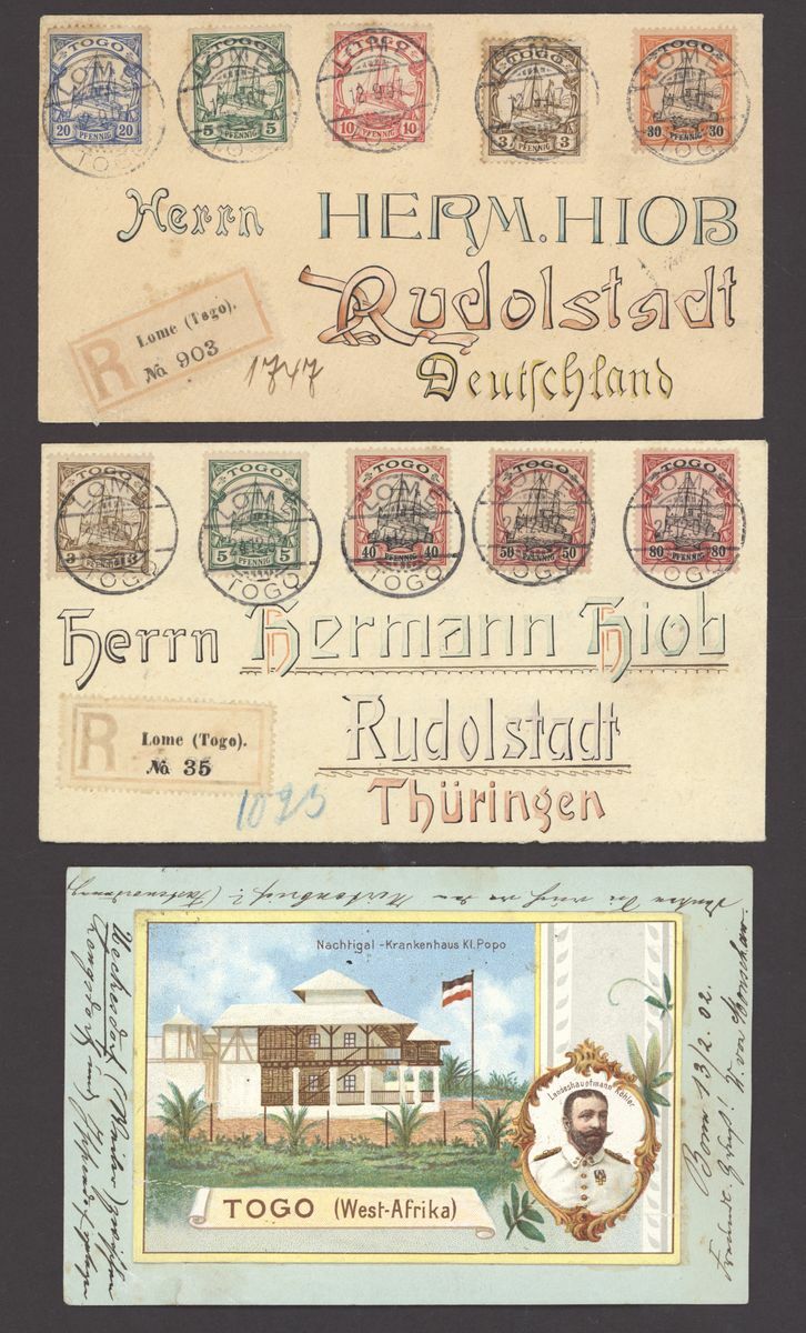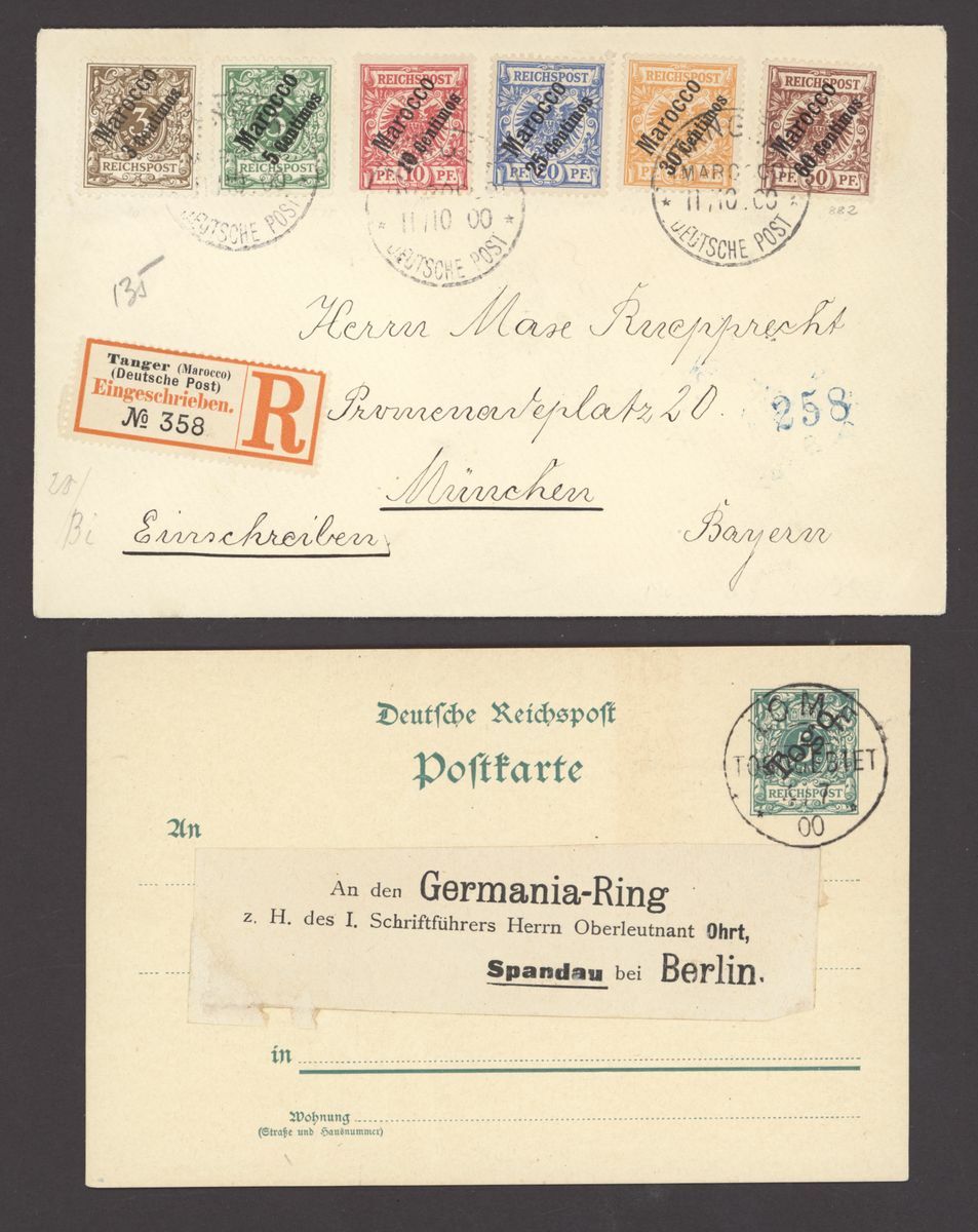 Selection on stock pages and loose, including Cameroun, Post Offices in Morocco 1899 set of six on cover Registered to Bavaria, 1911-18 6p. 25c. on 5m. (3), Post Offices in the Turkish Empire 1905-12 15pi. on 3m. mint from the foot of the sheet with HAN, 25pi. on 5m. used, Kiaochow 1901 10pf., 20pf., 30pf., 40pf. and 5pf. overprinted "Specimen", postal stationery, Togo 1900 5m. used, from the upper left corner of the sheet, Ship Post covers and cards, etc., chiefly good to fine