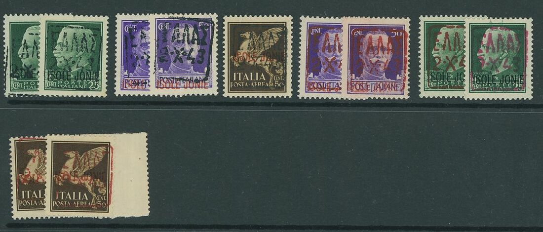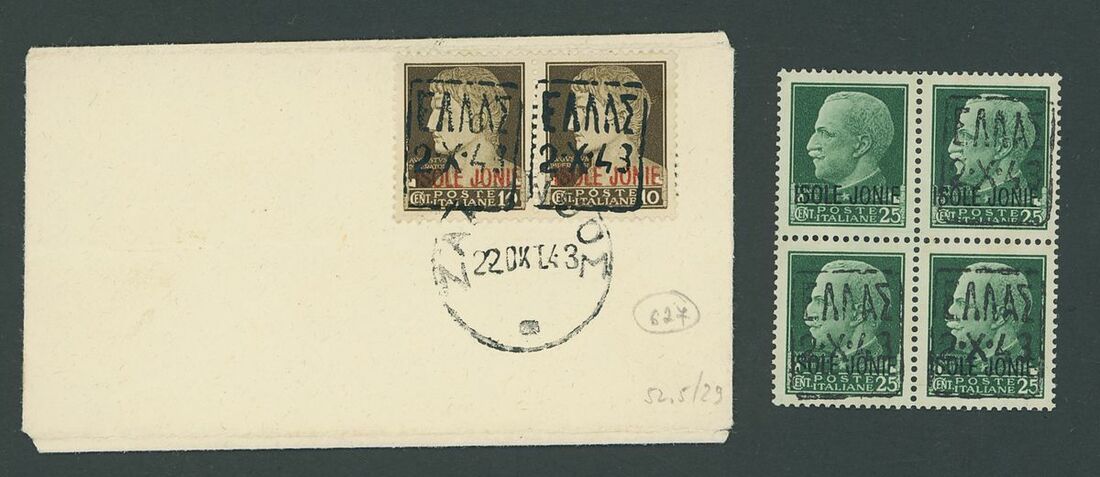 Selection (24), including sets of three with handstamps in red and in black, 25c. black handstamp block of four, one without handstamp, 25c. red handstamp and 50c. black handstamp on cover, unissued 10c. pair and strip of five with black handstamps on two covers, etc., good to fine and with a variety of certificates. S.G. 1-3a