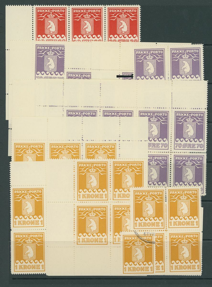 20oe. (corner block of six), 70oe. (7 blocks of four, block of 8), 1k. (3 singles 4 blocks of four, blocks of 6 and 9), unmounted mint or original gum; chiefly fine. Also a used 1k. S.G. P9b-11B