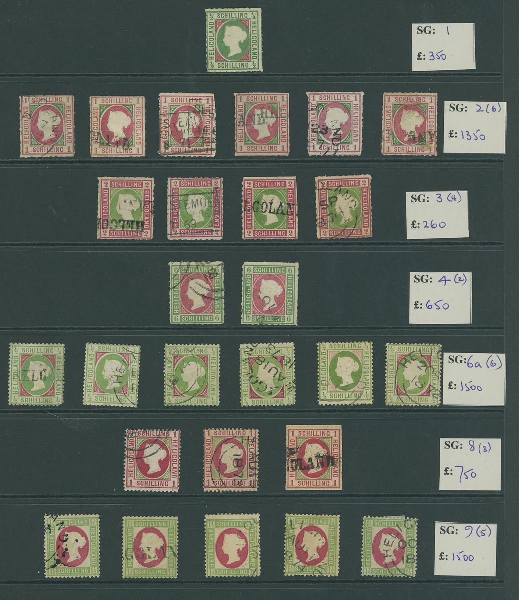 Selection (57) on stockpage, including 1867-68 rouletted 1sch. (6), 2sch. (4), 6sch. (2), 1869-73 ½sch. (6), 1sch. (3), 1½sch. (5), 1875-90 1m. (3), etc., used except one, chiefly good to fine. S.G. £8,300+