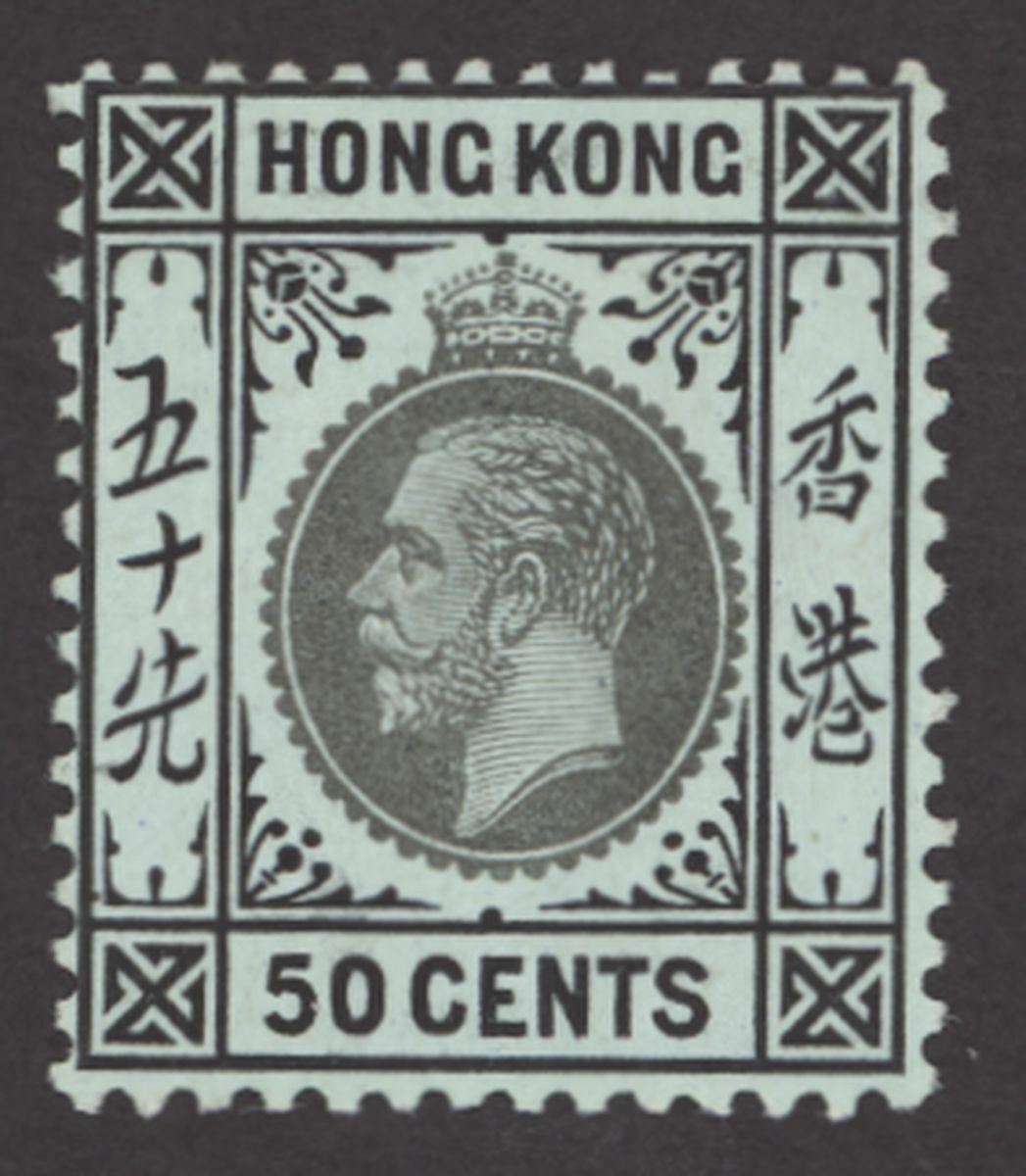 1912-21 MCA 50c. 50c. black on blue green with olive back, large part original gum; rare. S.G. 111b, £1,400