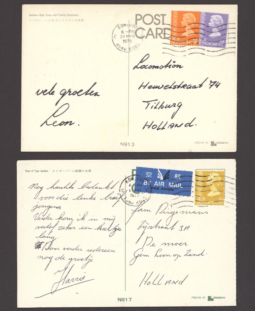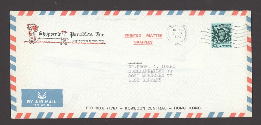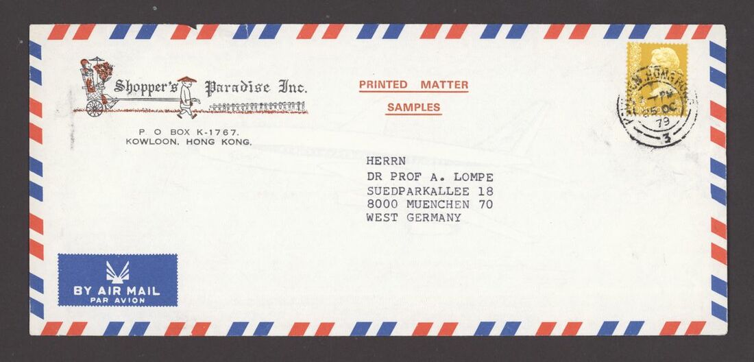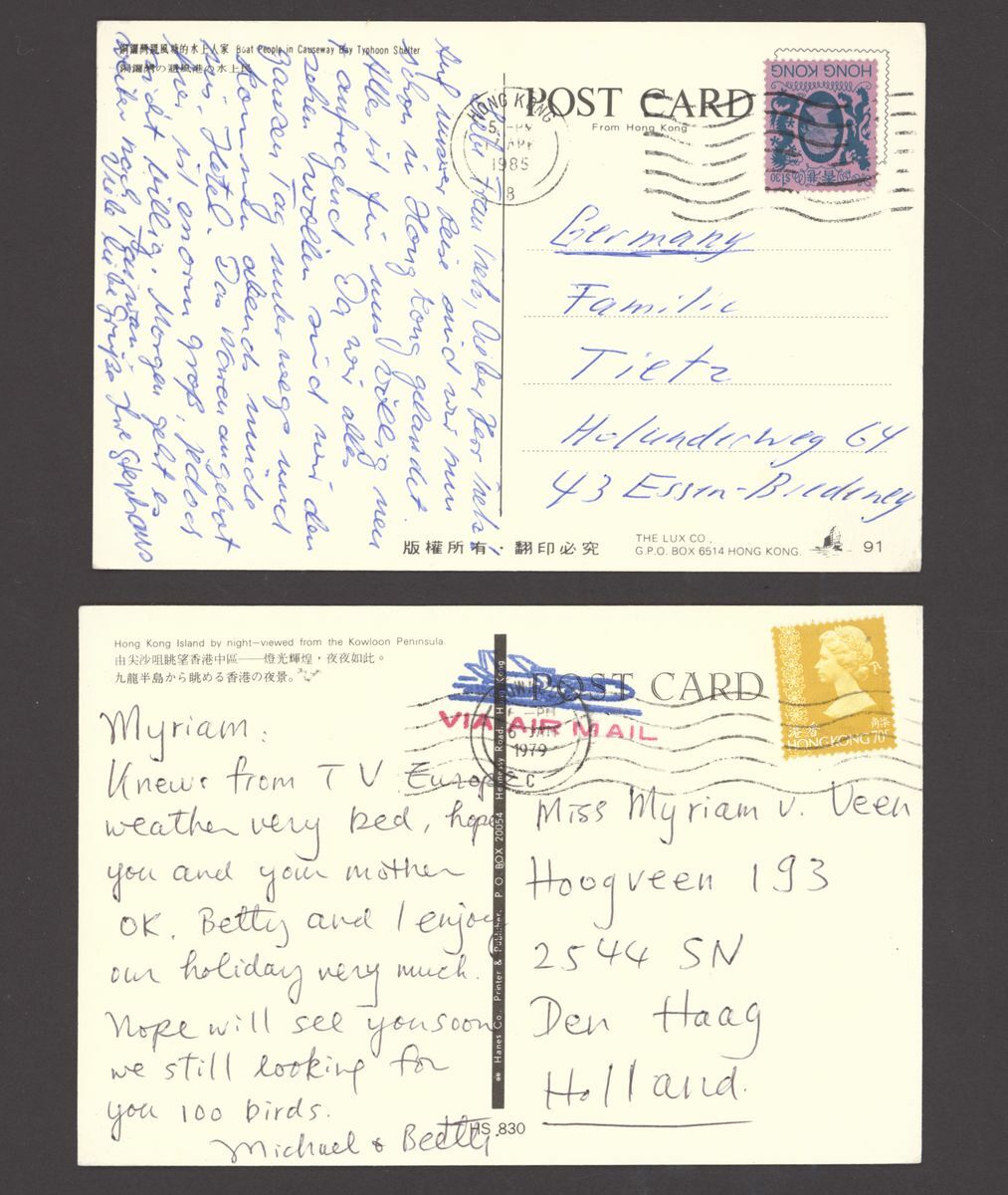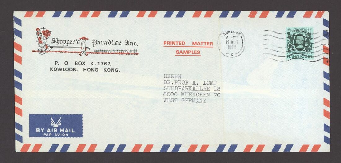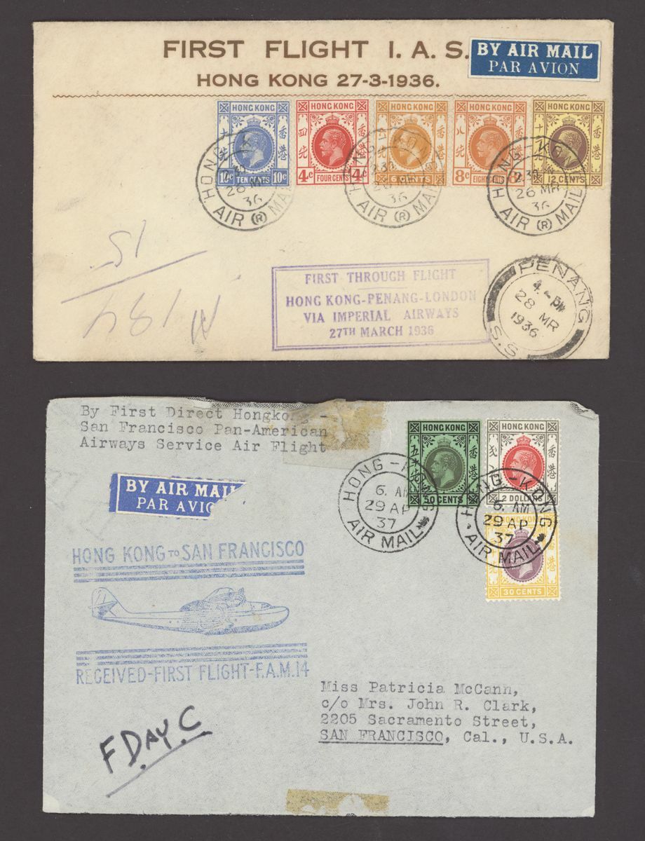 1884-1970s Postal History collection including 1884 3c. postal stationery card from Shanghai to Austria, 1899 postcard from China to Austria bearing China CIP 4c. tied by Pa-kua cancellation overlapped by Hong-Kong 2c. pair cancelled by Shanghai c.d.s., 1931 red band cover to China bearing Hong Kong 2c. and 10c. In addition a 1975 50c. bird ' The Hwamei' variety 'black printed double with Hong Kong stamp society certificate. Mixed condition, an interesting lot for the student of the subject.