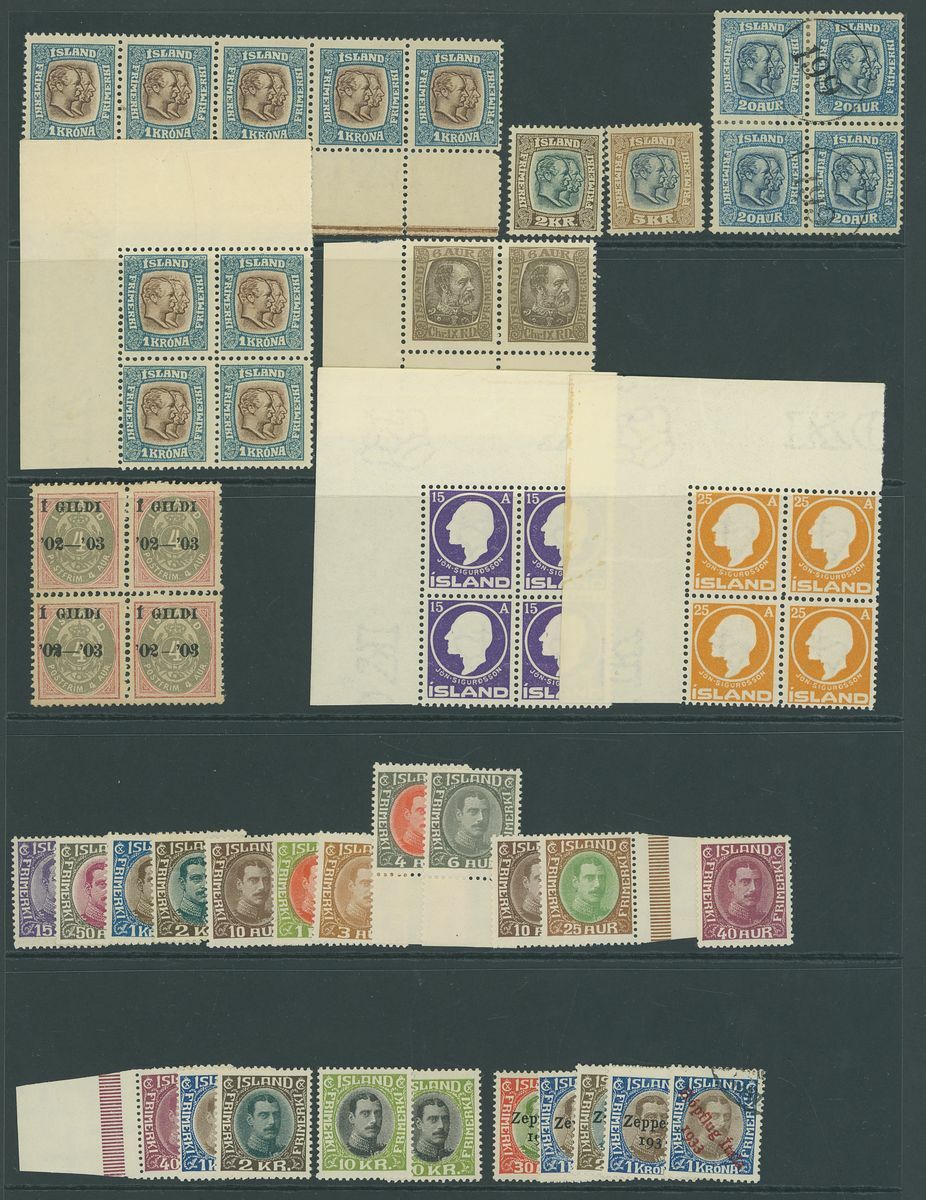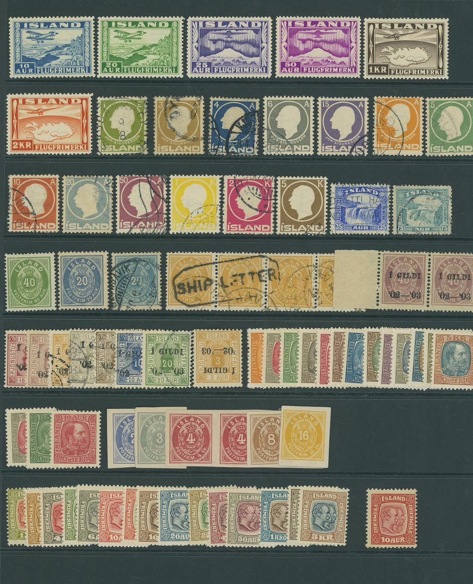 1873-1934, mint and used selection (150) on stockpages, including 1873 2s., 3s., 4s. (pair), 8s. and 16s. imperf. proofs on carton paper, 1895 40a, 1882-95 3a. horizontal strip of four with Reykjavik and octagonal