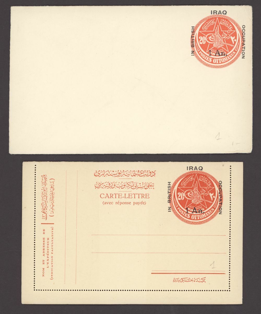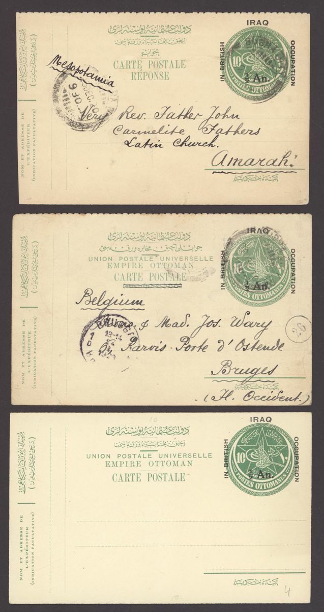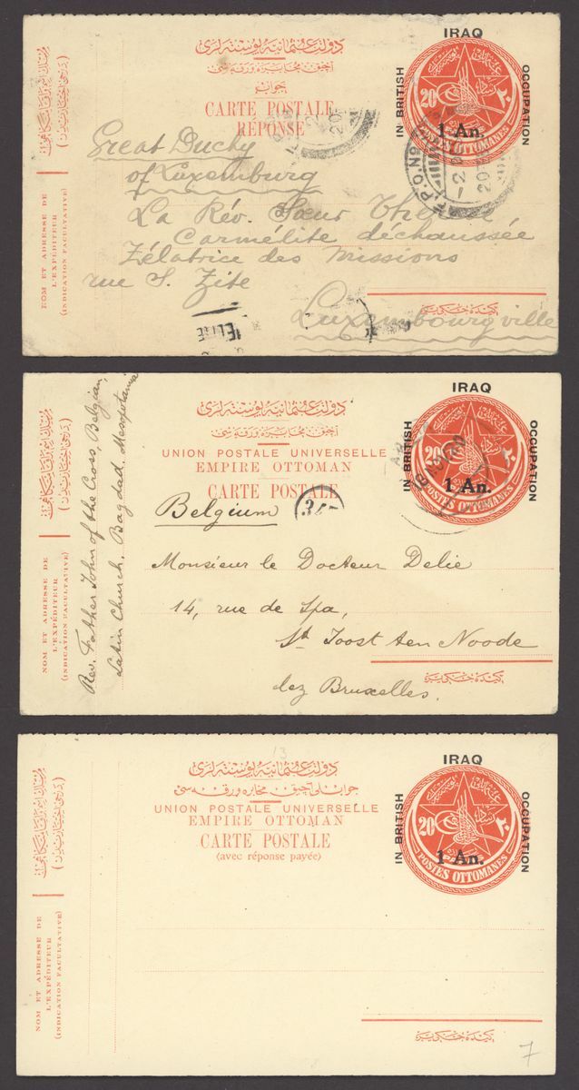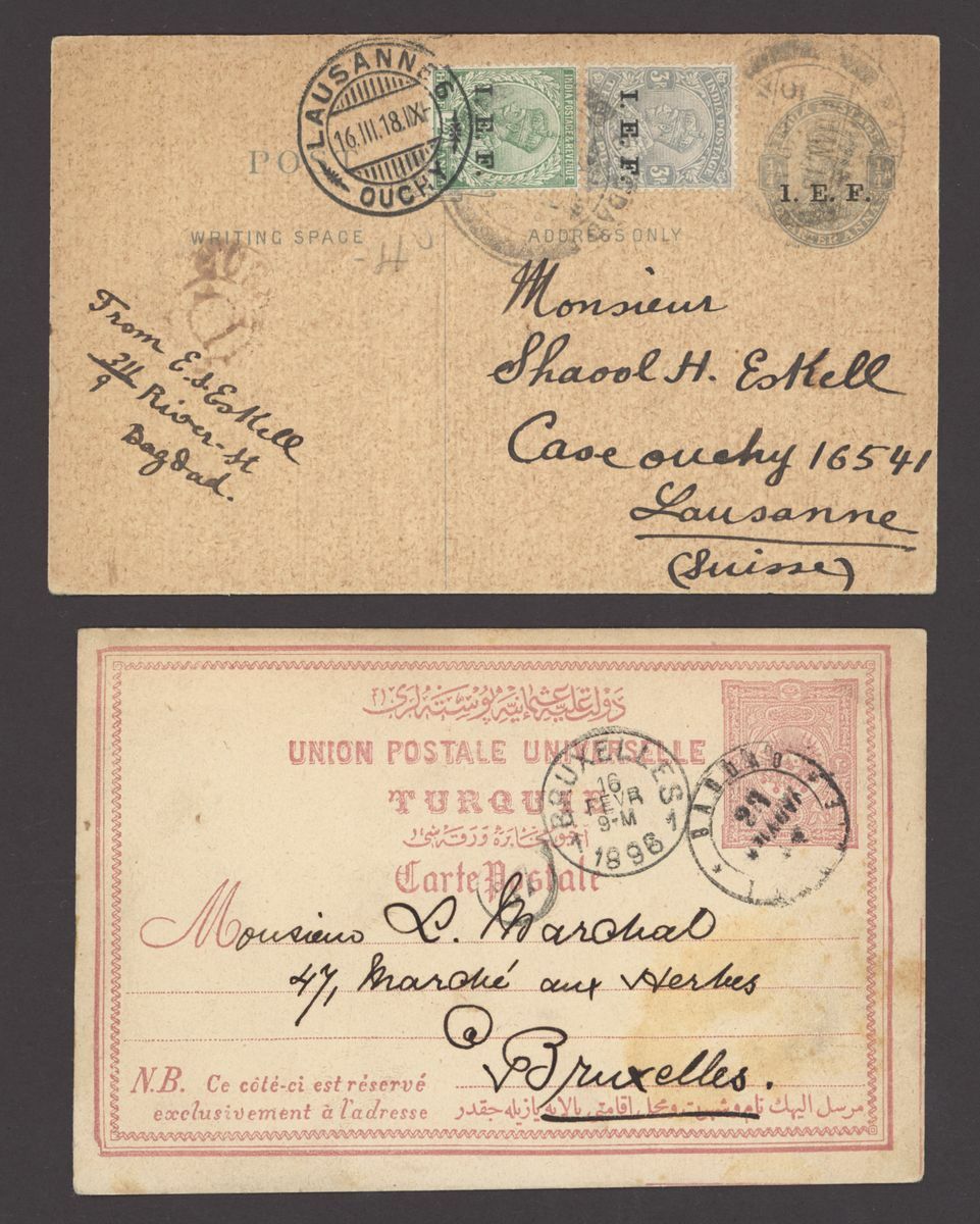 1896-1933 unused and used postal stationery selection (17) including 1896 Turkey 20m. postal card used from Baghdad to Belgium, 1918 India overprint I.E.F. ¼a. card uprated with I.E.F. 3p. and ½a. stamps used from Baghdad to Switzerland, 1920 Turkish postal card overprinted