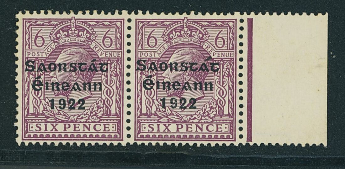 6d. reddish purple, accent inserted by hand variety, contained in a horizontal pair from the right of the sheet; original gum, fine and scarce. S.G. 60a, £850+. Photo
