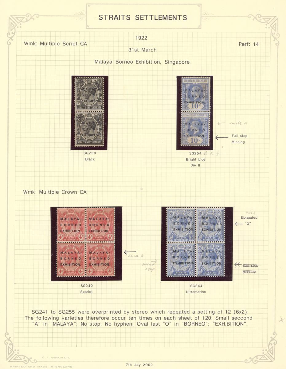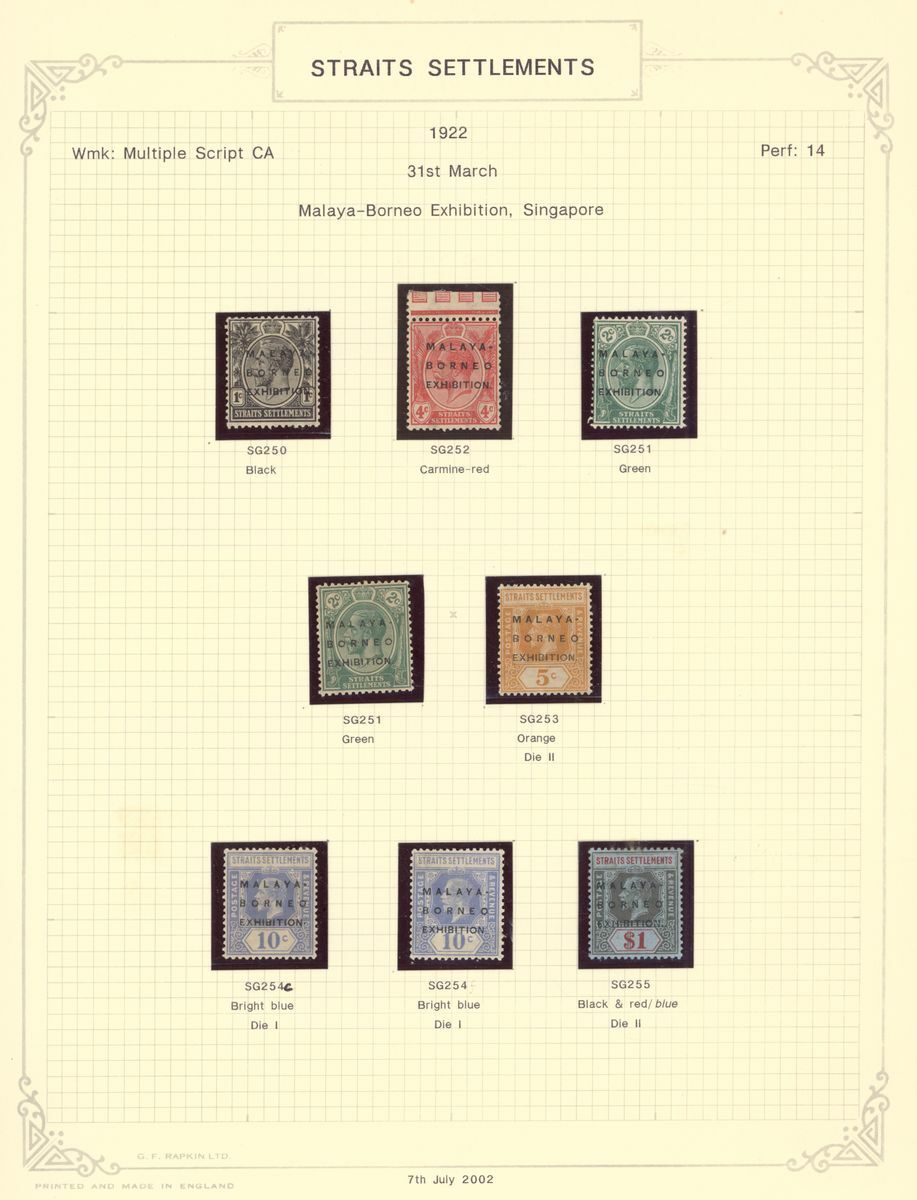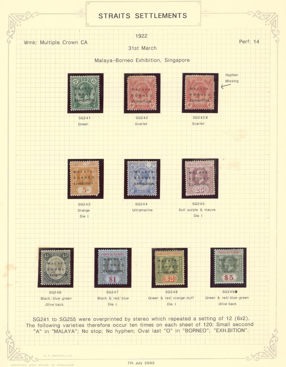 1912-37 mint group on album pages comprising 1912-23 MCA set to $5 including a range of shades including $2 (4) and $5 (5, including blue-green with olive back and with emerald back), 1921-33 Script set to $5 with some additional shades, 1922 Borneo Exhibition set to $5 including some multiples with varieties and 1936 Script set to $5; generally good to fine. S.G. cat value in excess of £2,300