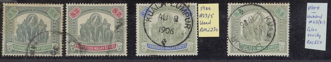 1900-34 mint and used collection including 1900 on Negri Sembilan to 50c. (2, one mint one specimen), on Perak to $2 (2, one used one mint), plus additional $1 and $2 specimen, 1904-22 $1 and $2 mint, $25 used (f.c.), mixed condition though high catalogue value, direct inspection advised.