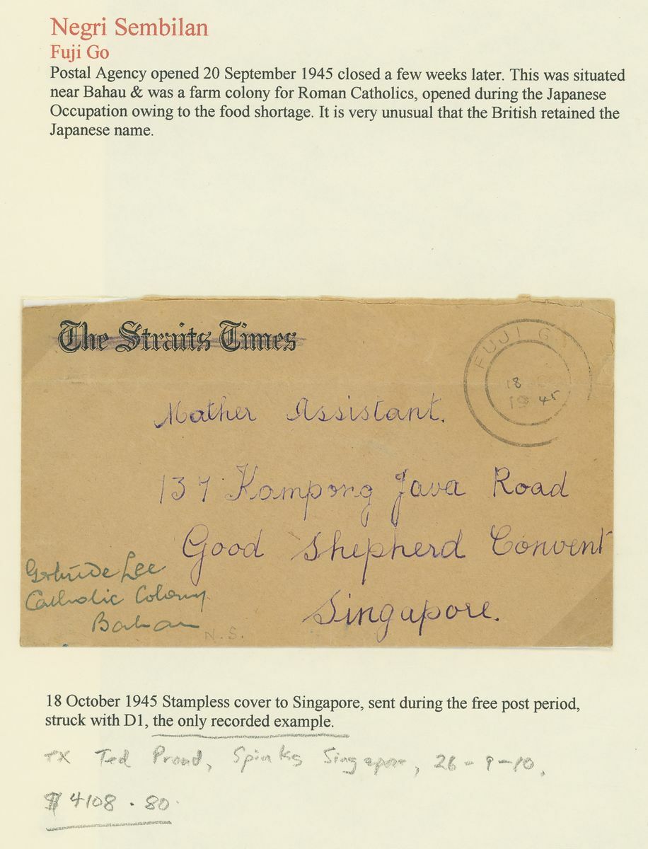 1945 (18 Oct.) stampless envelope to Singapore sent during the free post period, showing