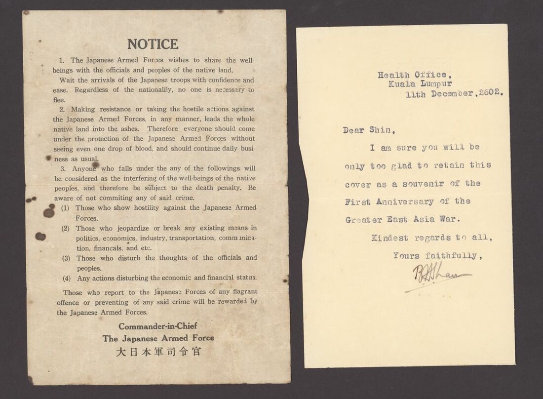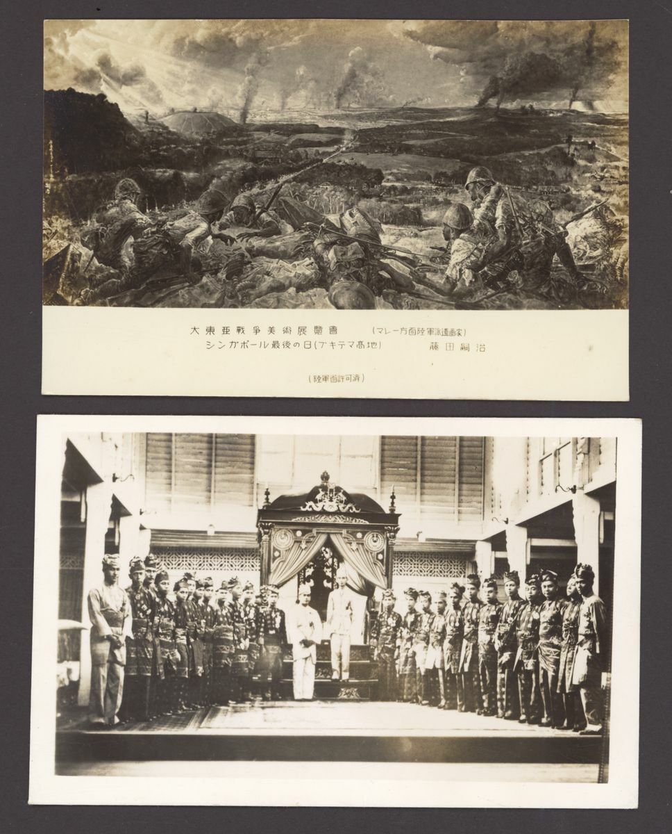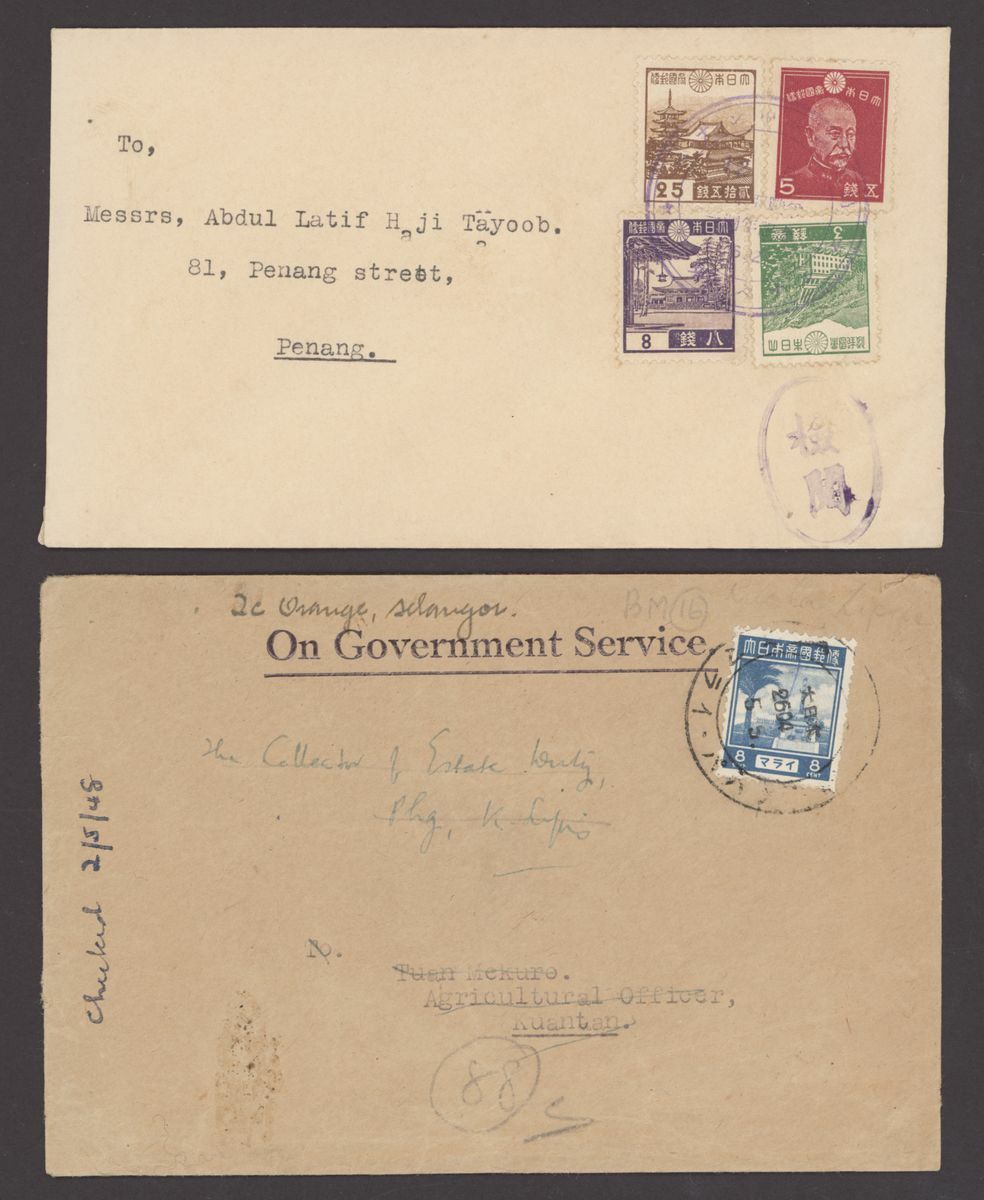 A small balance of consignment including postcards (6 unused, 4 used), a Japanese propaganda leaflet, two newspapers franked with 2c. green, three 'Malai Sinpo' franked labels, plus a few extras. Mixed condition.