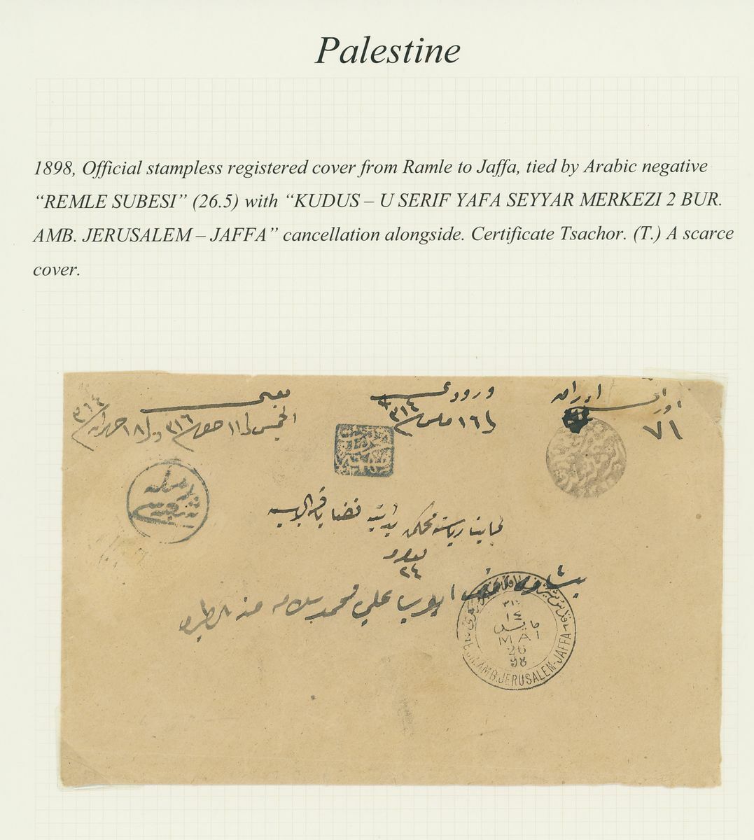 1898 (26 May), stampless Official cover (slightly truncated at top) from Ramle to Jaffa, with negative Arabic