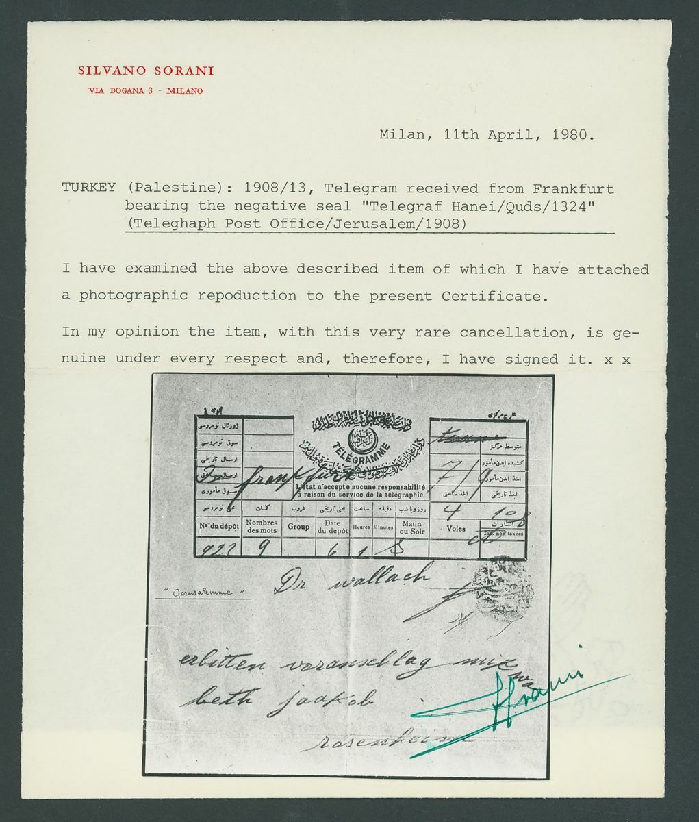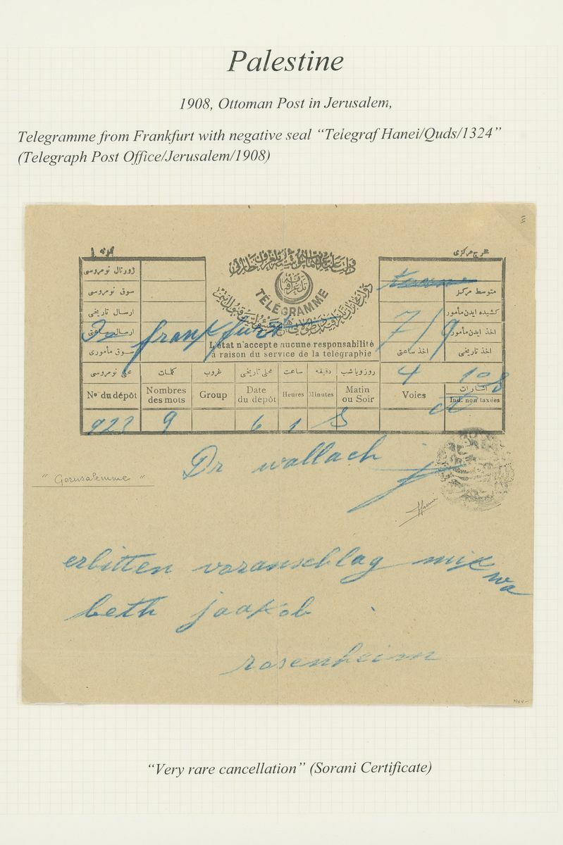 1908 Telegramme form received from Frankfurt with negative seal