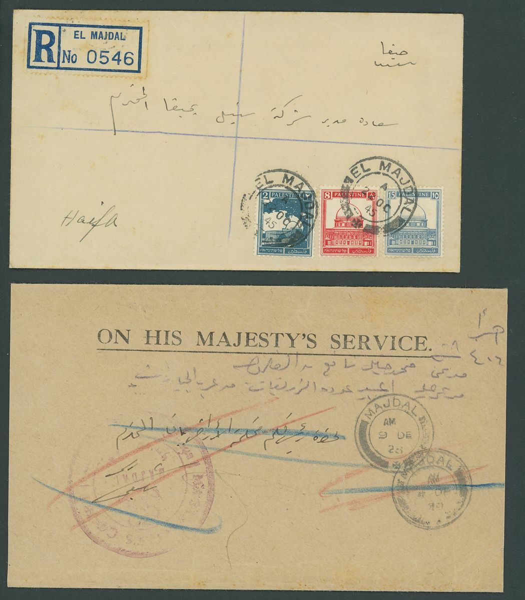 El Majdal: 1924-27, selection of four items, including 1924 cover from Jerusalem franked 1922 1m. and 4m. with