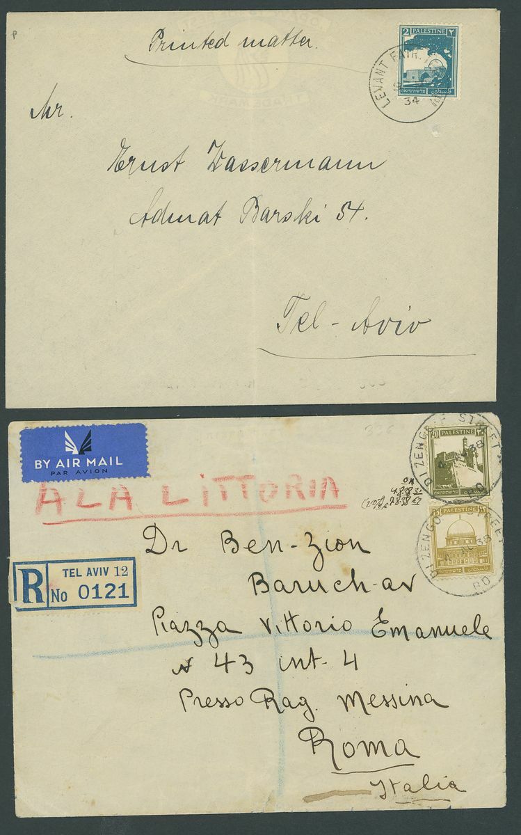 Tel Aviv: Dizengoff Street: 1938 (4 Aug.) "Ala Littoria" Air Mail, cover to Rome franked 1827-45 13m. and 20m. tied by