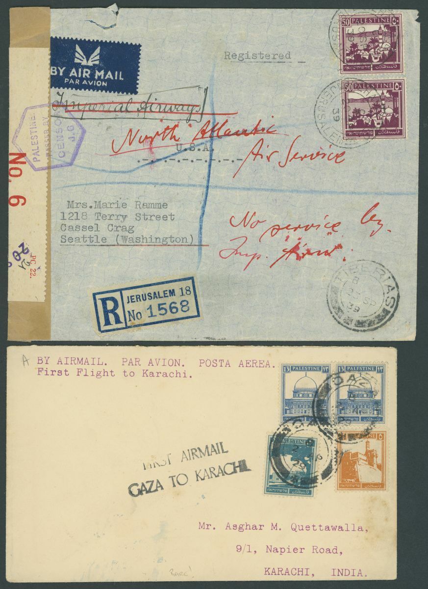1929 (2 April), Gazi to Karachi stage of the Imperial Airways London to Karachi flight, cover franked 1927-45 2m., 5m. and 13m. pair with Gaza cancellation with