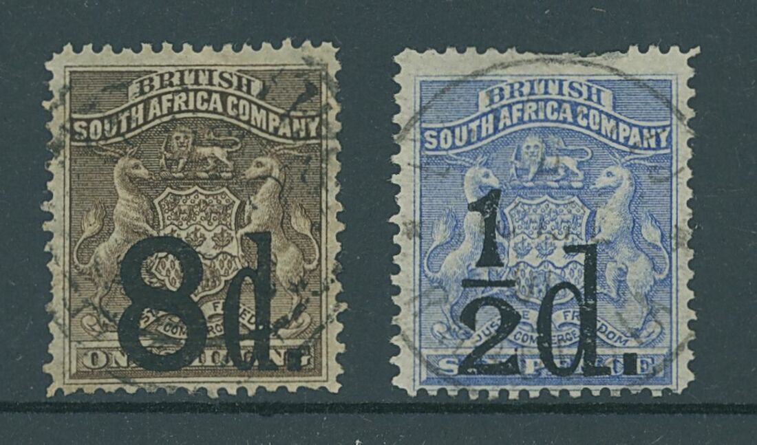1892 ½d. on 6d. ultramarine, 8d. on 1/- grey-brown, used; the first with a few short perfs. at top. Fine. S.G. 14, 17, £1,350