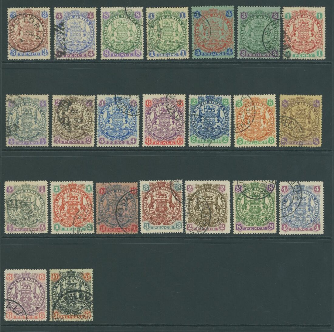 1896-97 Die I set (except 1d., 2d. and 6d.), Die II set and 1897 ½d. to £1, used, good to fine