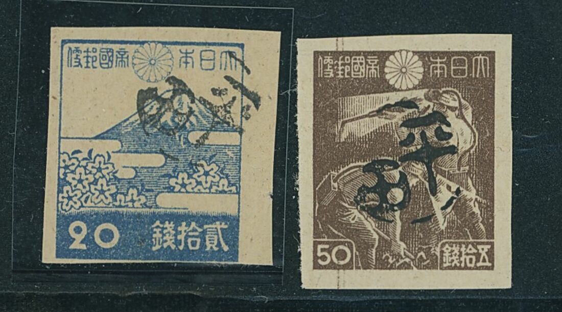 1947 unused duo including 20s. and 50s. without gum as issued. Fine and scarce. Each with a J.B. Head certificate. Scott 4X2, 4X3 $1,500