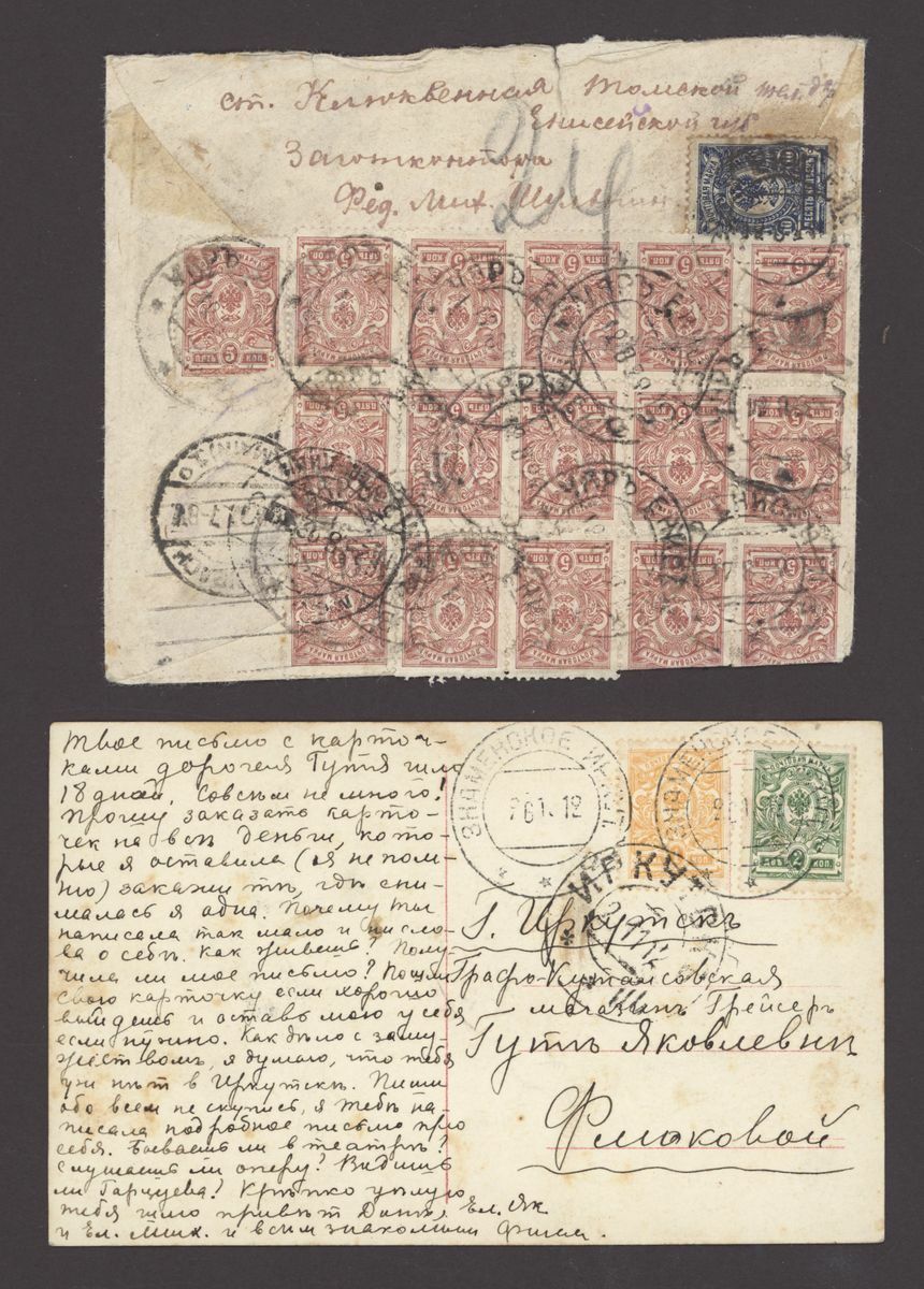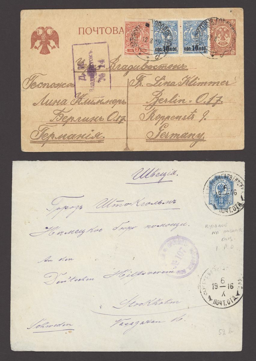 1907-35 Postal history selection (50) including registered mails, censored mails, a variety of different postmarks including Siberia and smaller villages. Mixed condition, an interesting lot for the expert of the area.