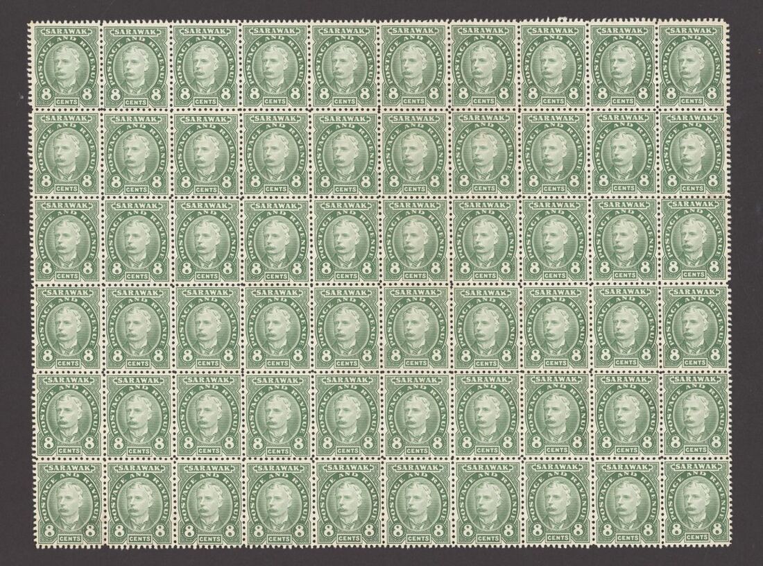 8c. green, a complete sheet (10x6) without margins, unused without gum, some light discolouration on reverse otherwise fine. S.G. 31, £3,300