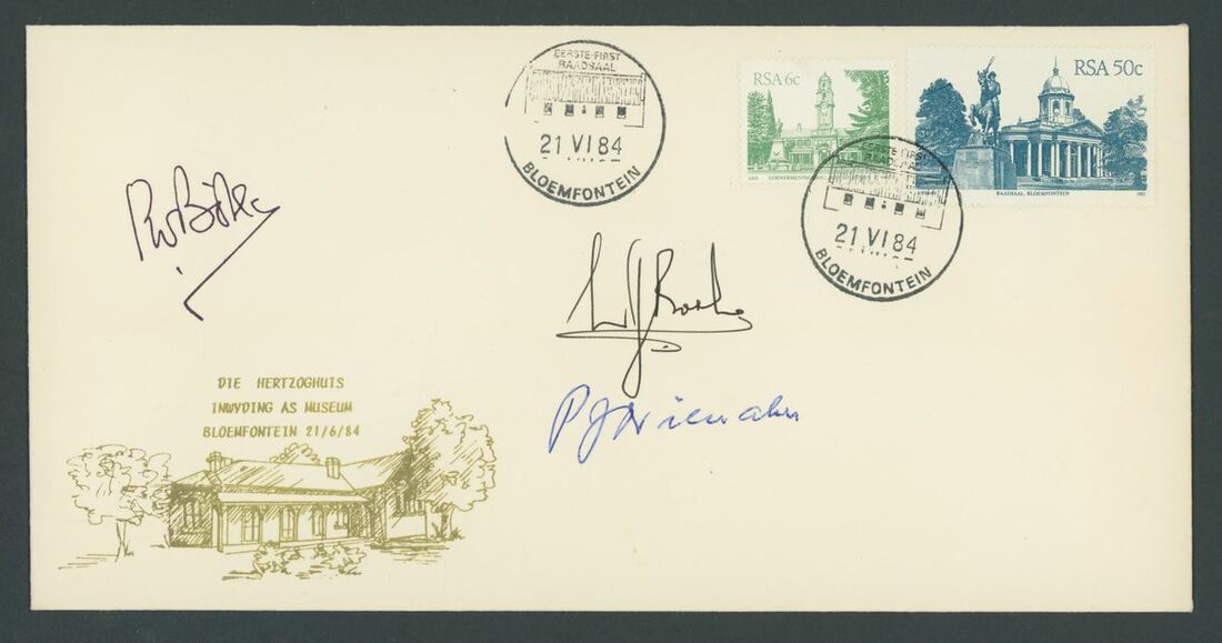 1978-89 a selection (13) of covers including signed by P.W. Botha, Zola Budd, F. W. de Klerk etc. An interesting group for the specialist.