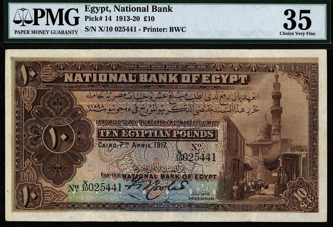 (x) National Bank, Egypt, £10, Cairo, 7th April 1917, serial number X/10 025441, Rowlatt signature, (Pick 14), in PMG holder 35 Choice Very Fine