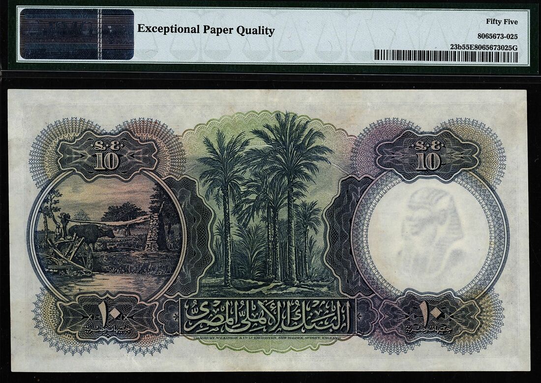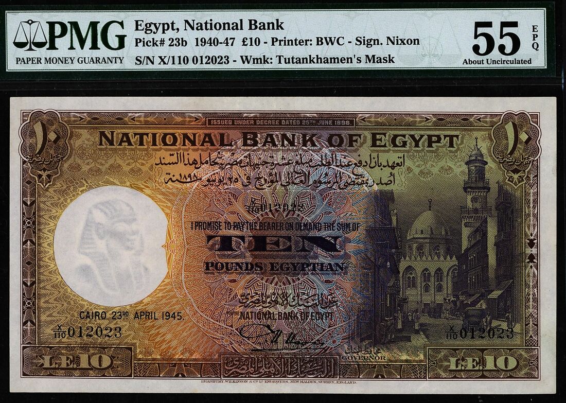 (x) National Bank, Egypt, £10, Cairo, 23rd April 1945, serial number X/110 012023, Nixon signature, (Pick 23b), in PMG holder 55 EPQ About Uncirculated