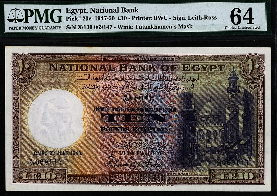 (x) National Bank, Egypt, £10, Cairo, 9th June 1948, serial number X/130 069147, Leith-Ross signature, (Pick 23c), in PMG holder 64 Choice Uncirculated