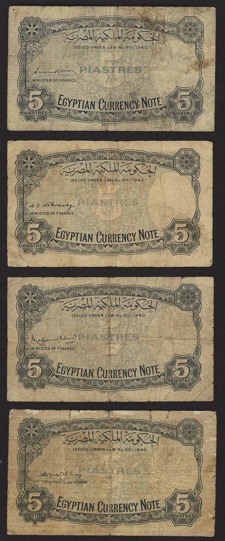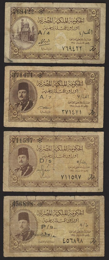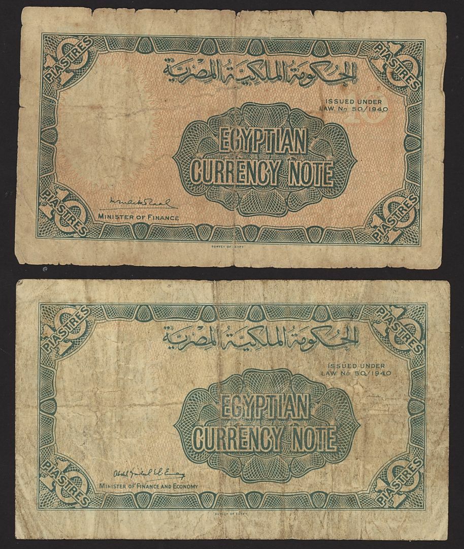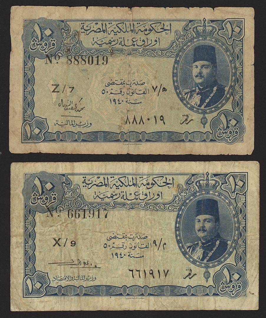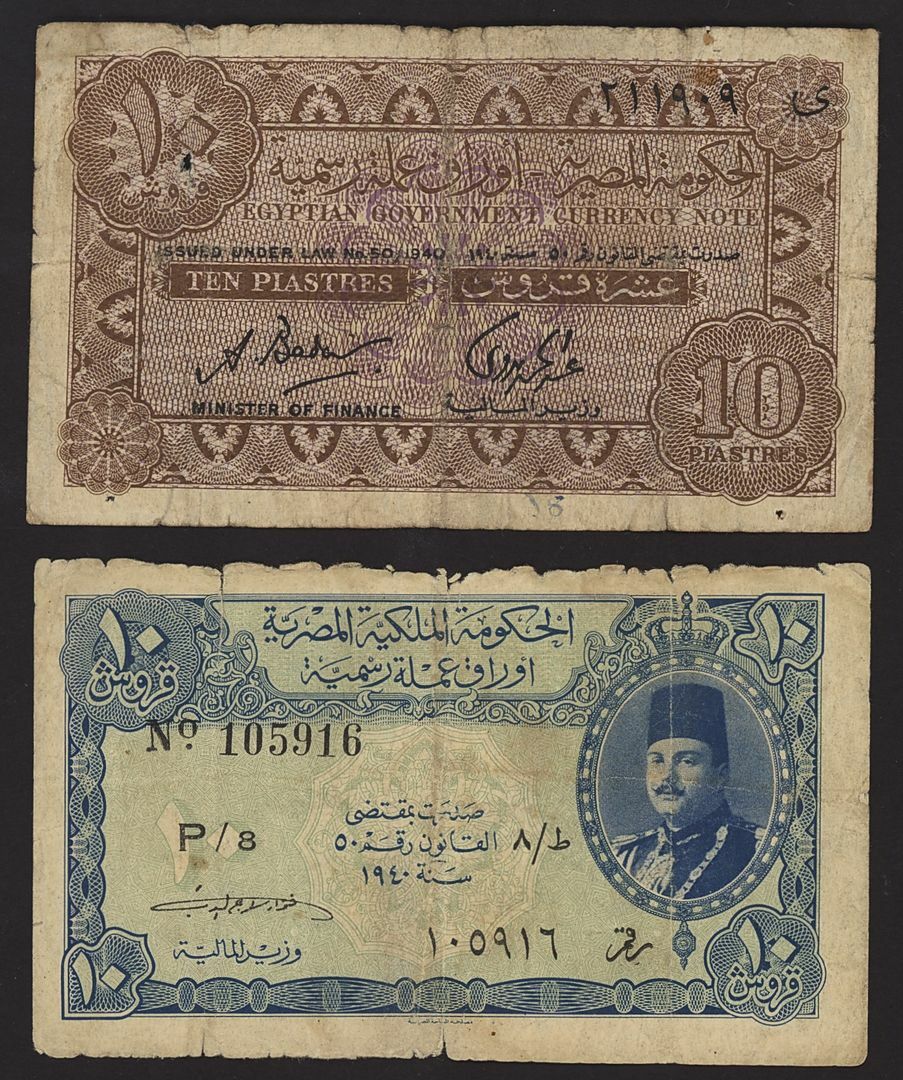 Egyptian Government Currency Notes, [8 notes] 5, 10 Piastres, Cairo, 1940,