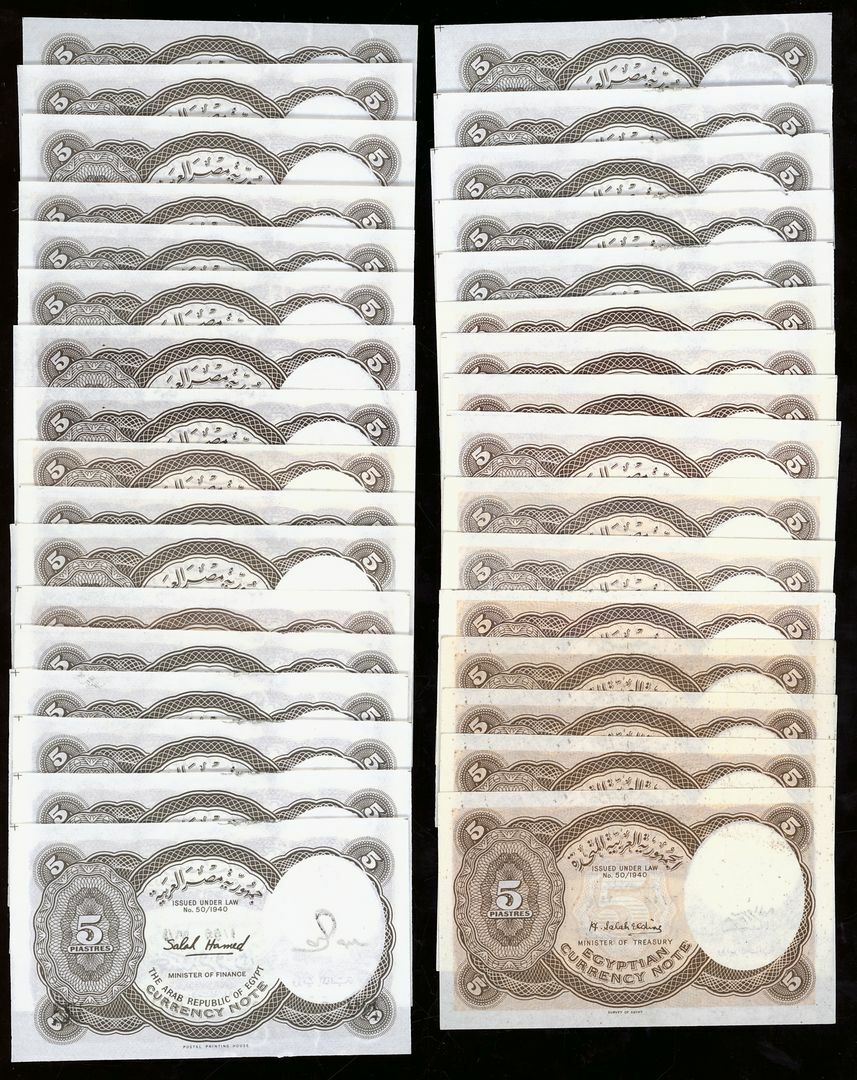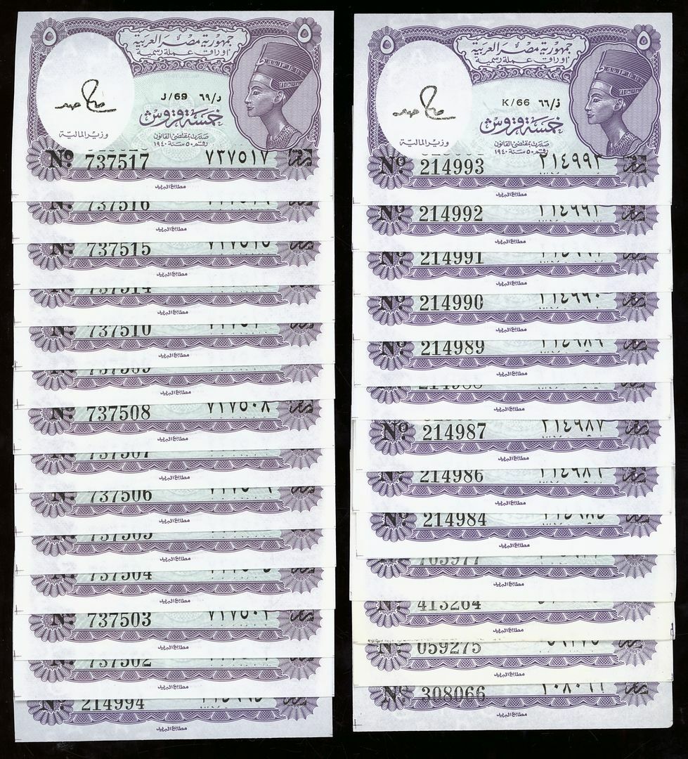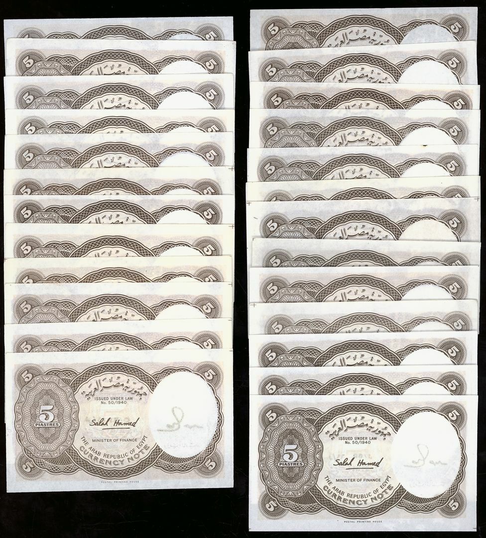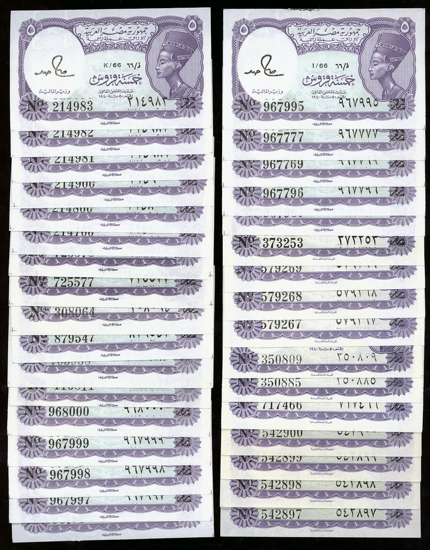 (x) Arab Republic of Egypt Currency Notes, [116 notes] 5 Piastres, 1954-1996, includes consecutive serial numbers