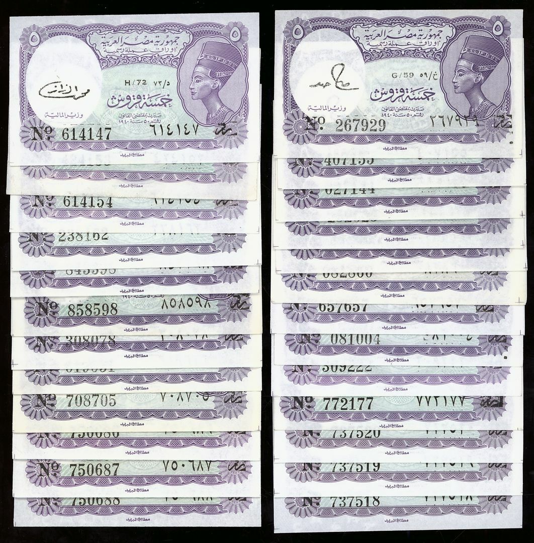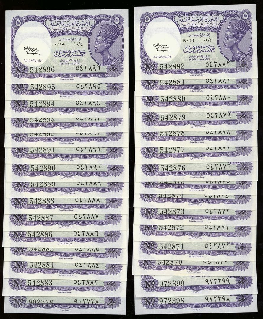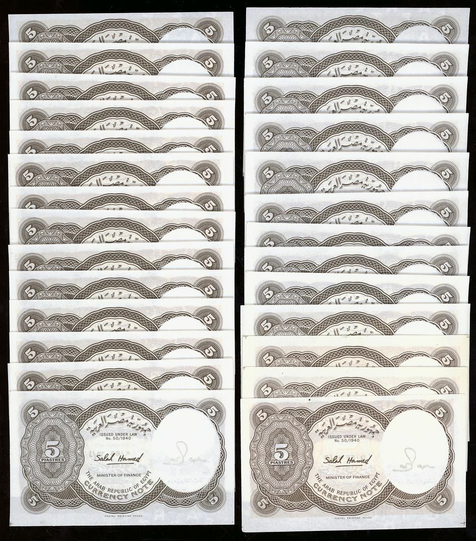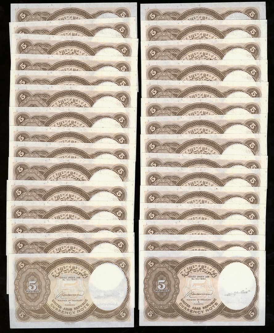 (x) Arab Republic of Egypt Currency Notes, [116 notes] 5 Piastres, 1954-1996, includes consecutive serial numbers