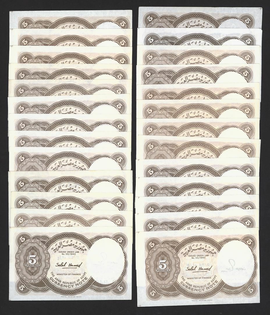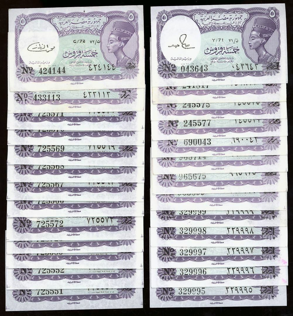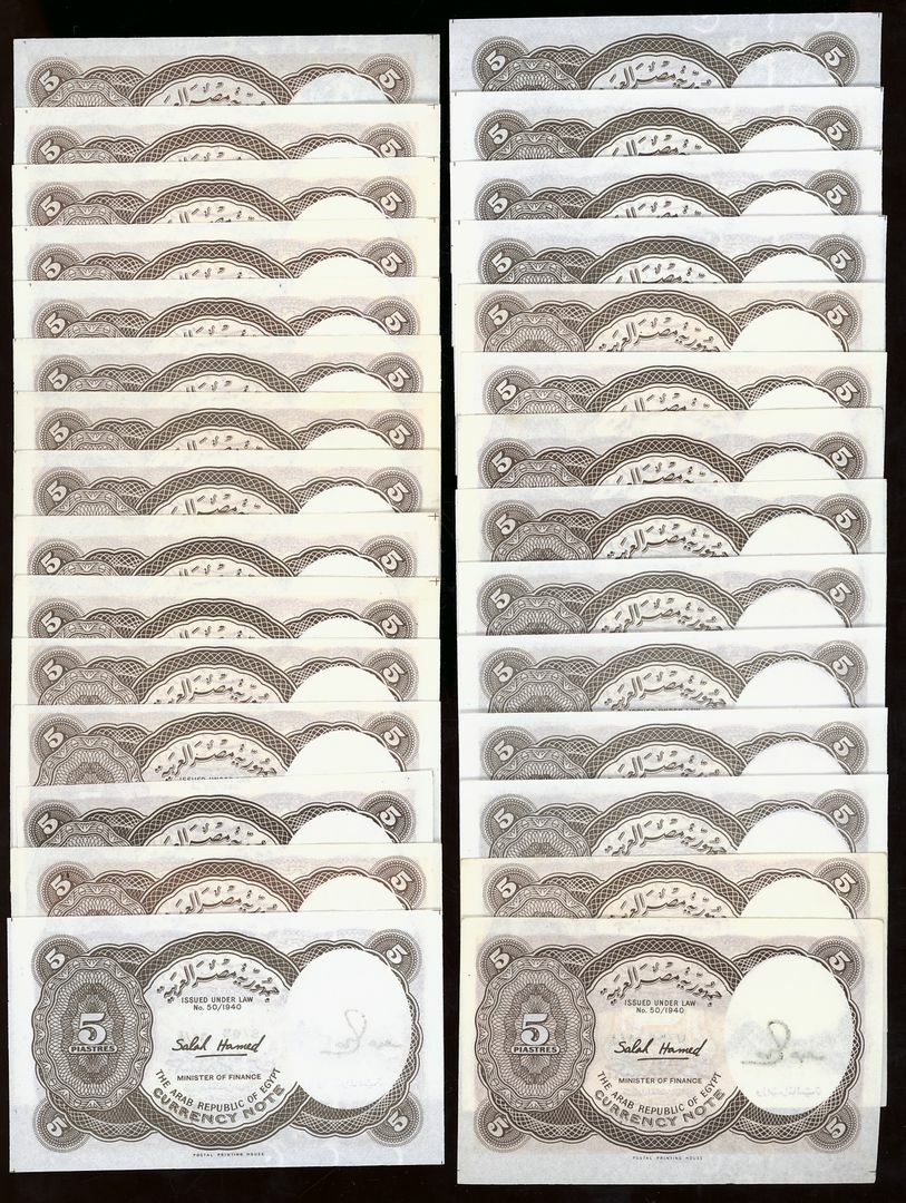 (x) Arab Republic of Egypt Currency Notes, [162 notes] 5 Piastres, 1978-1996, includes consecutive serial numbers