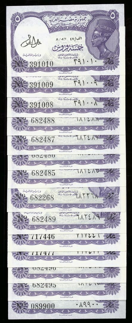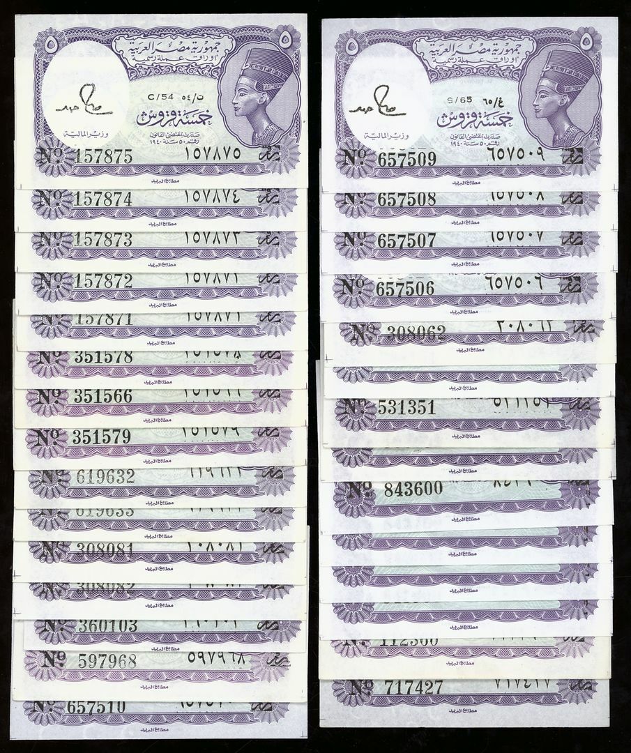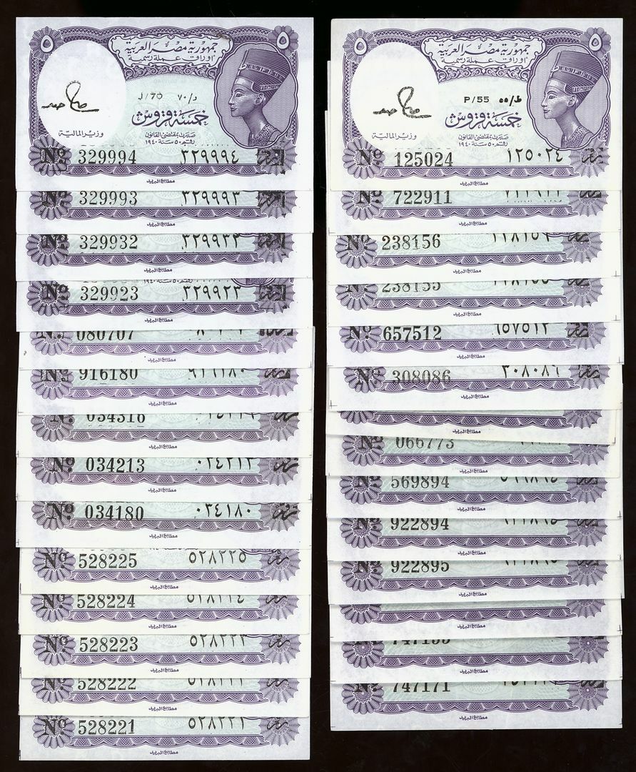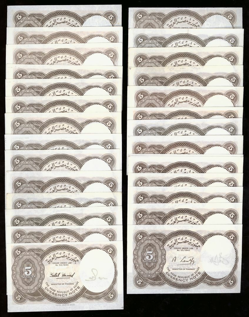 (x) Arab Republic of Egypt Currency Notes, [162 notes] 5 Piastres, 1978-1996, includes consecutive serial numbers